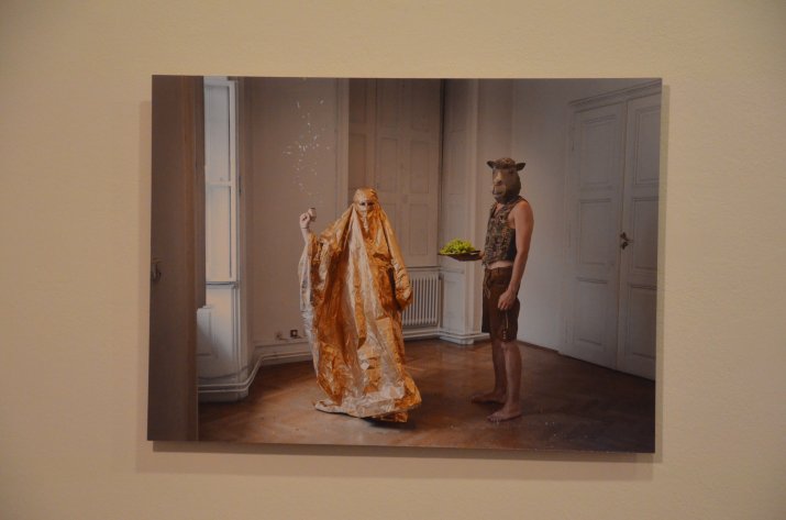 Bei der Vernissage wurde die Galerie im Andechshof außerdem zur Bühne: Im Rahmen einer Performance trugen „Burka-Trägerinnen“ ein Heimatlied vor.