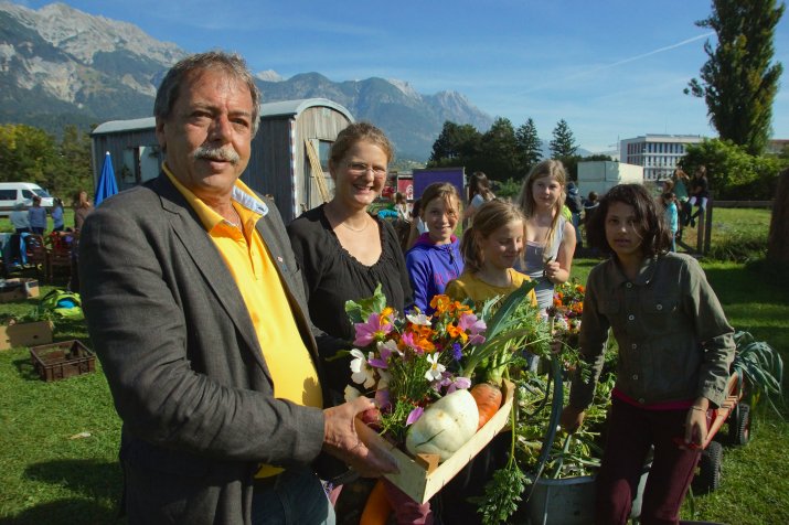 Ein ganz besonderes Erntedankfest feierte die Freie Waldorfschule Innsbruck Ende September auf ihrem Acker, der im Rahmen des „Urban-Gardening-Projektes“ am Campagnereiter-Areal entstand. Der für Grünraum zuständige Stadtrat Mag. Gerhard Fritz besuchte die SchülerInnen bei der erfolgreichen Gemüseernte. Nach der gemeinsam Ernte wurde ein Teil des Gemüses von den SchülerInnen selbst verkocht, ein anderer Teil wurde im Schulhof an Eltern und Interessierte verkauft.