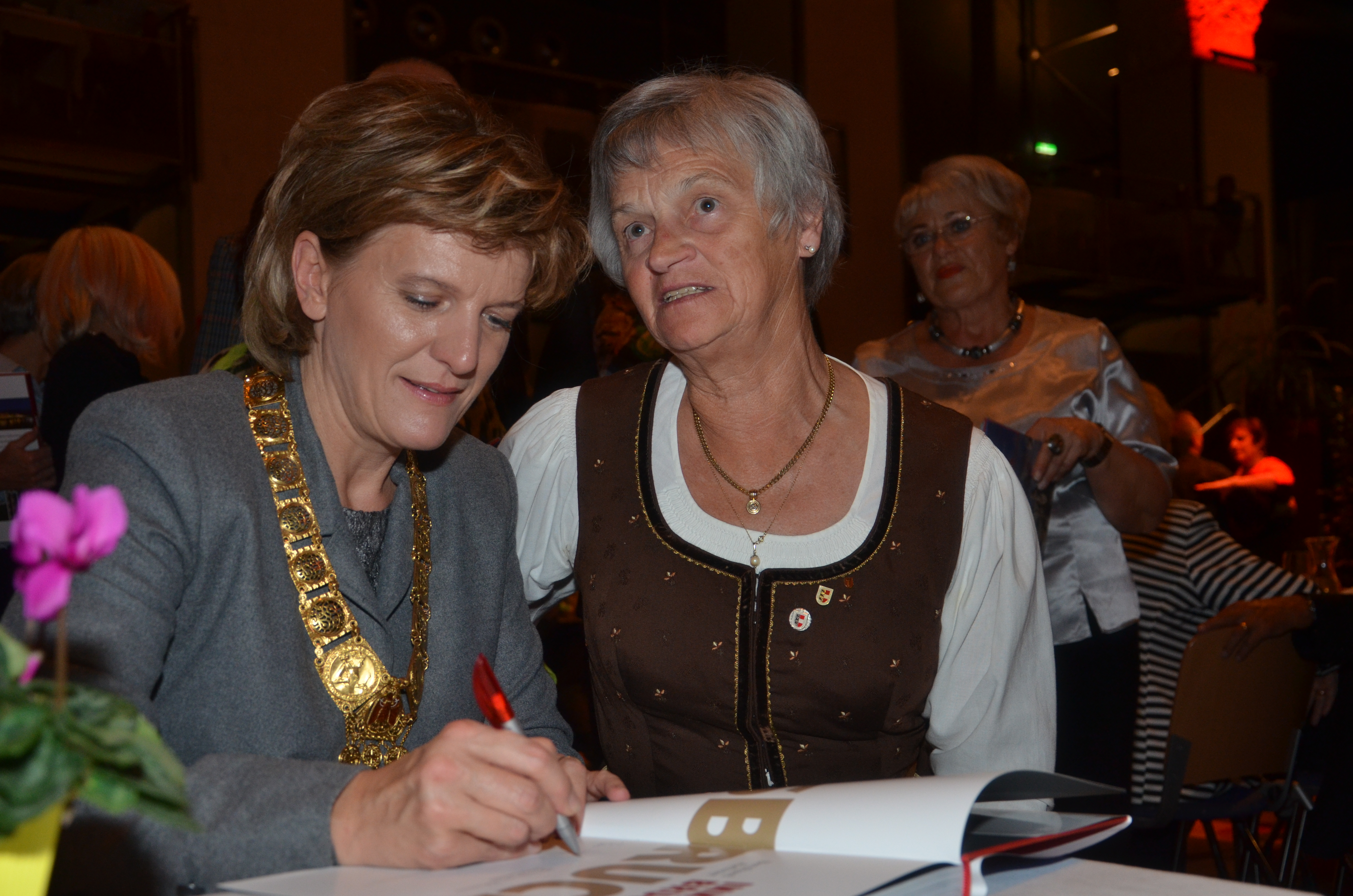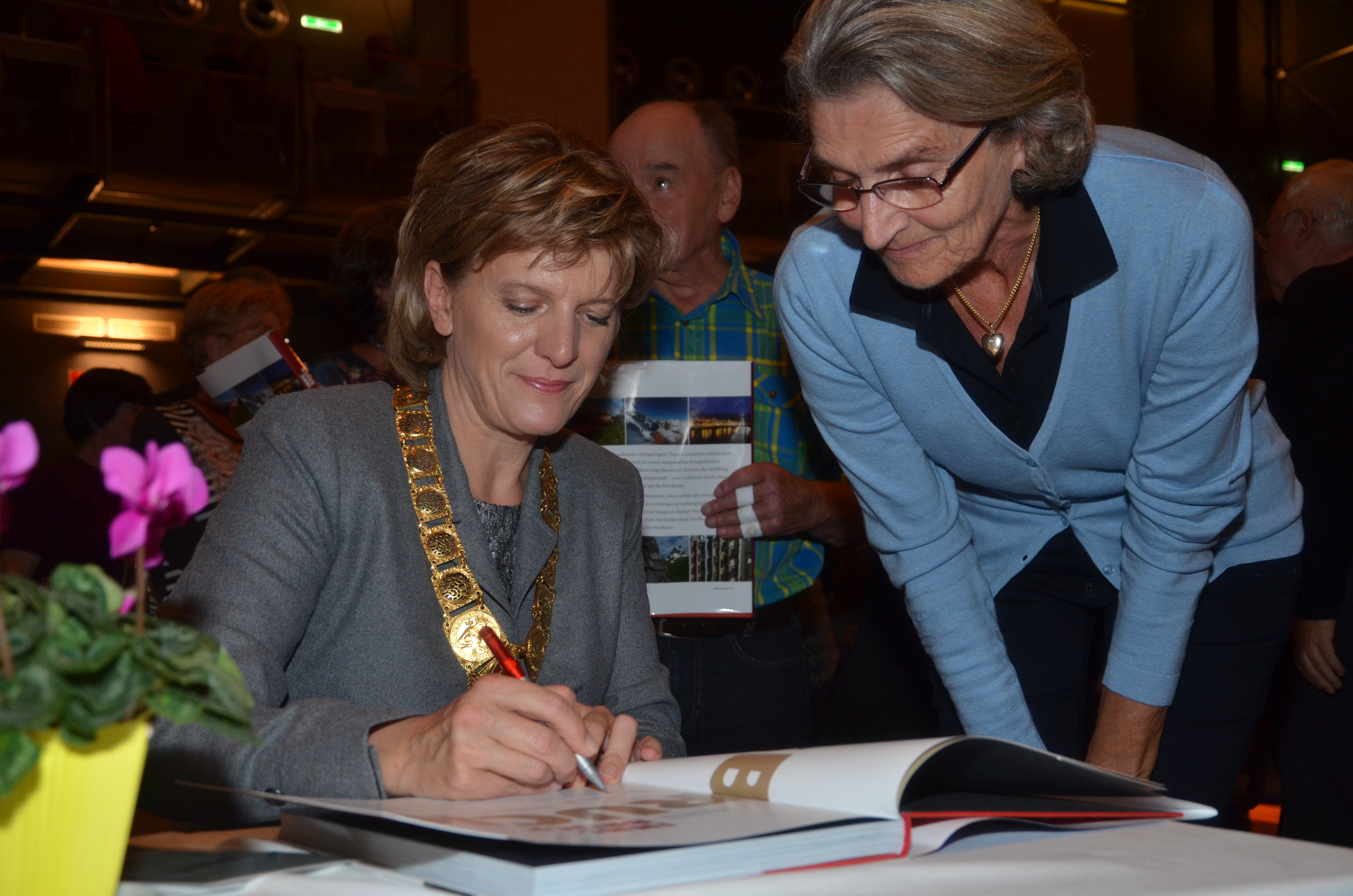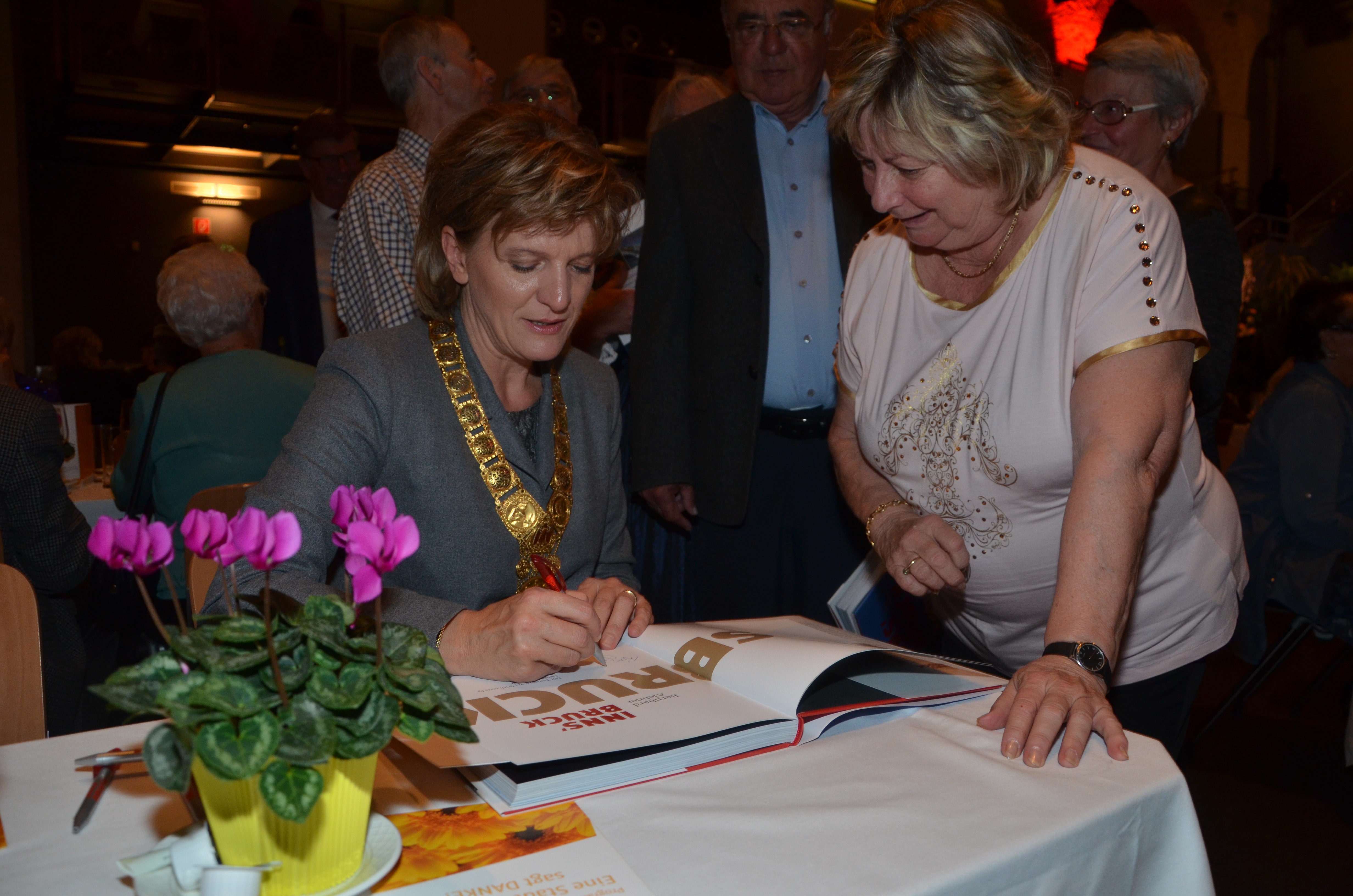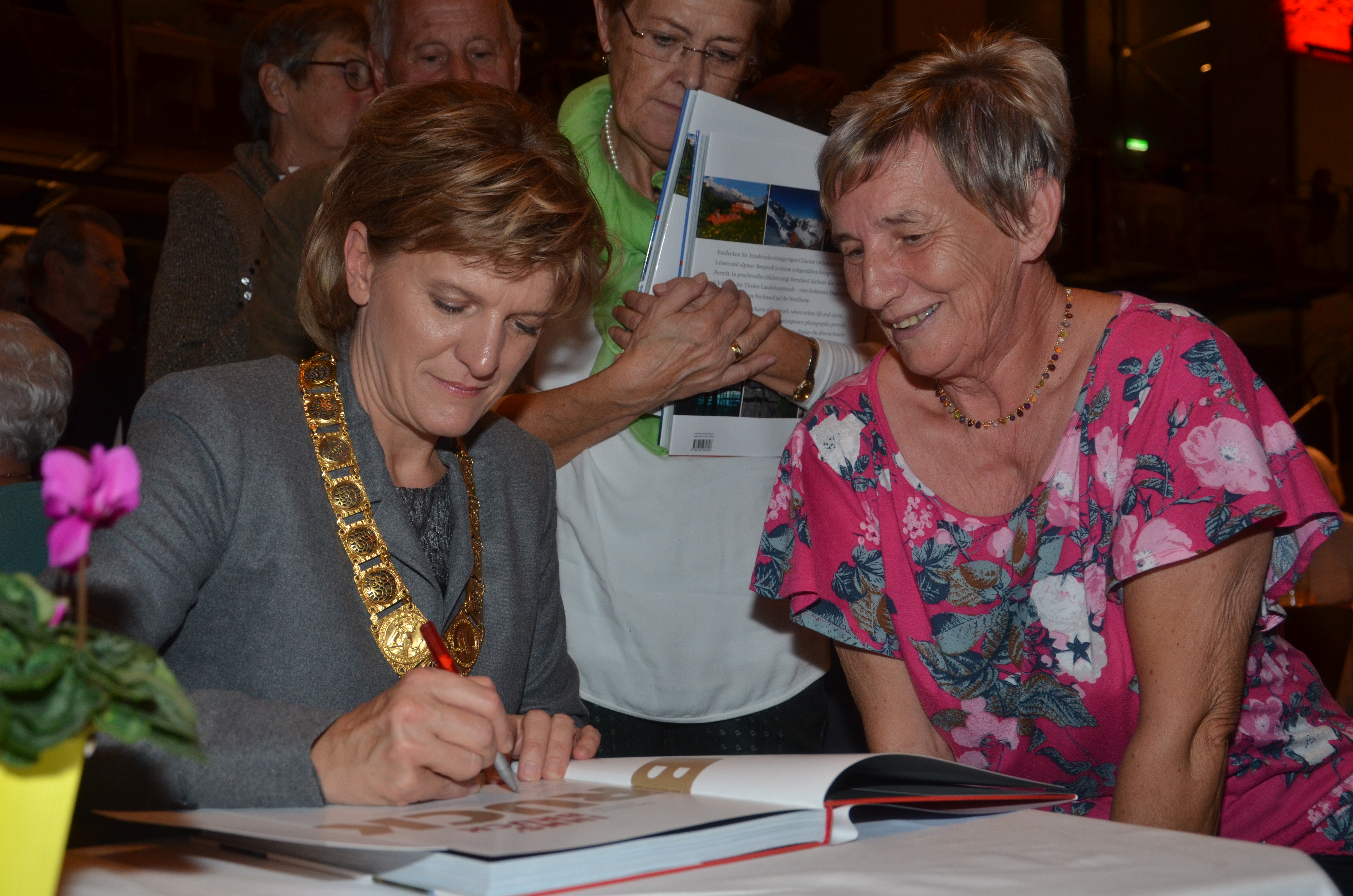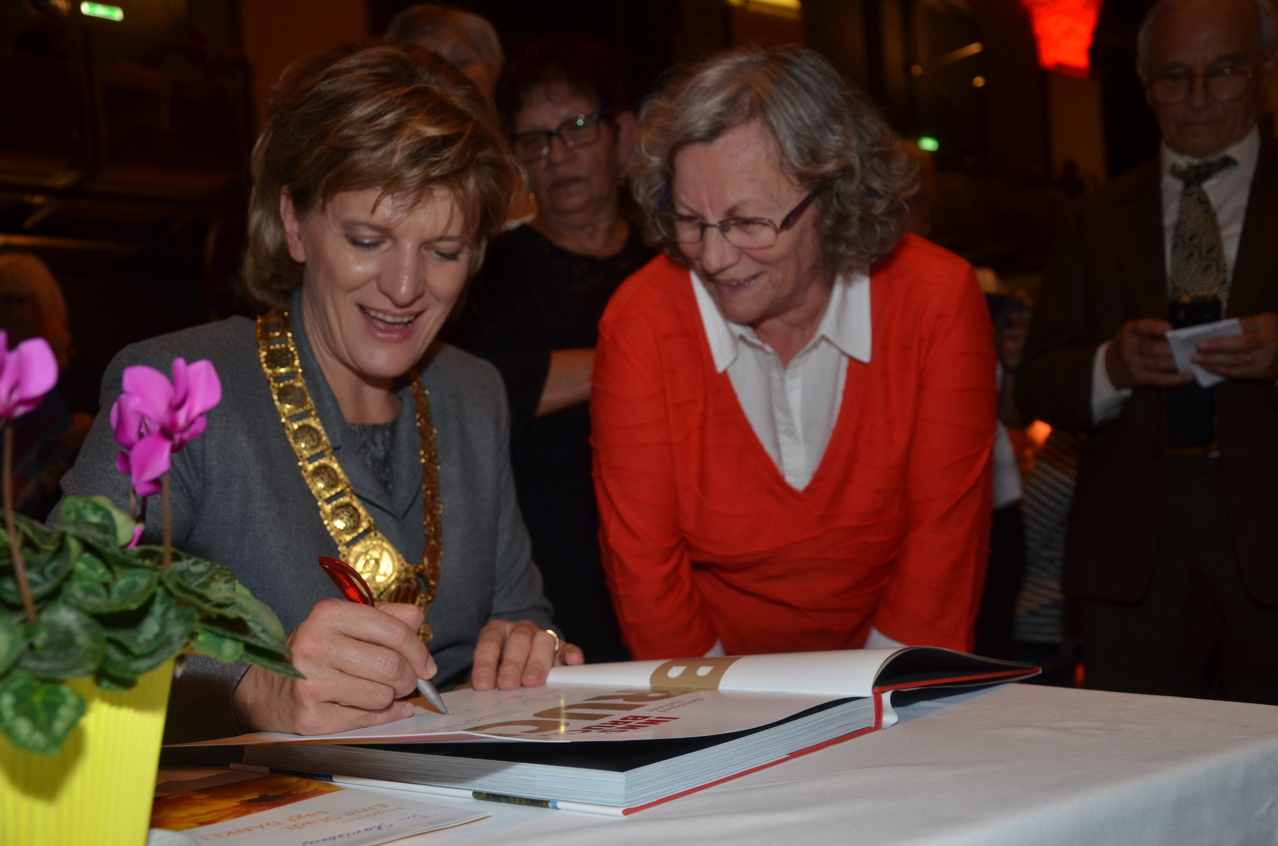 Viele der anwesenden "Geburtstagskinder" holten sich noch eine Unterschrift von Bürgermeisterin Christine Oppitz-Plörer, die gerne jeden Singier-Wunsch erfüllte.