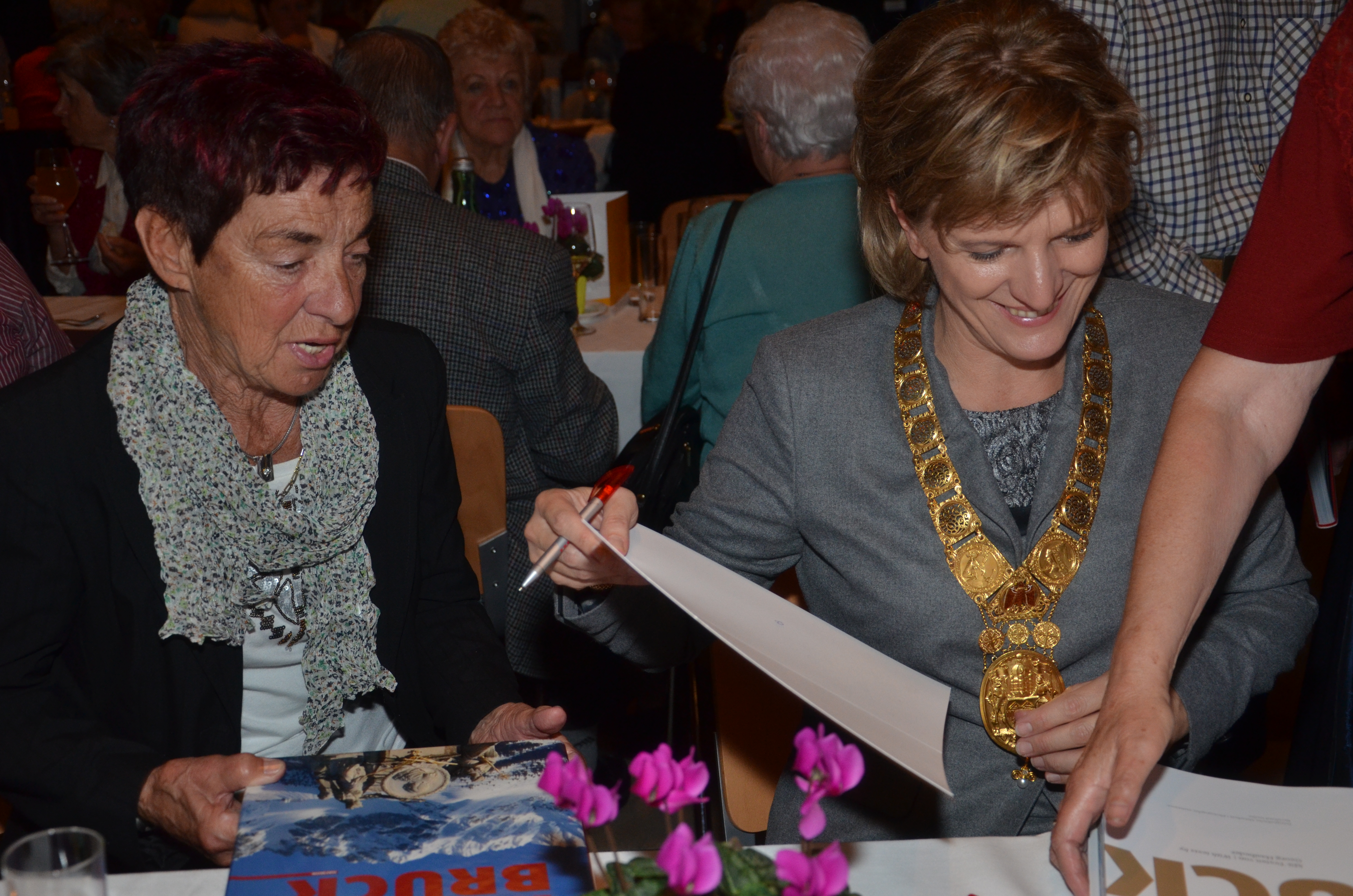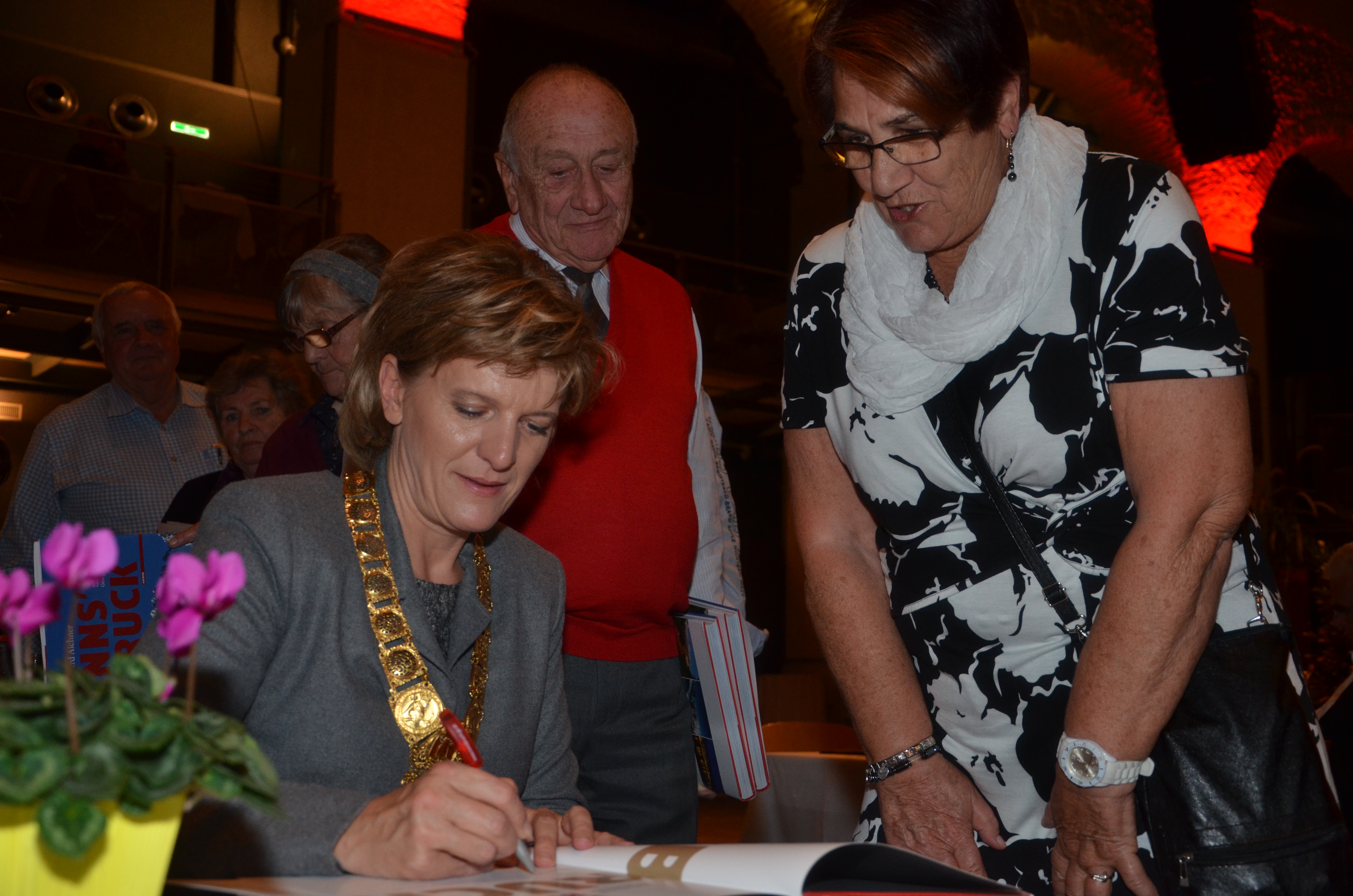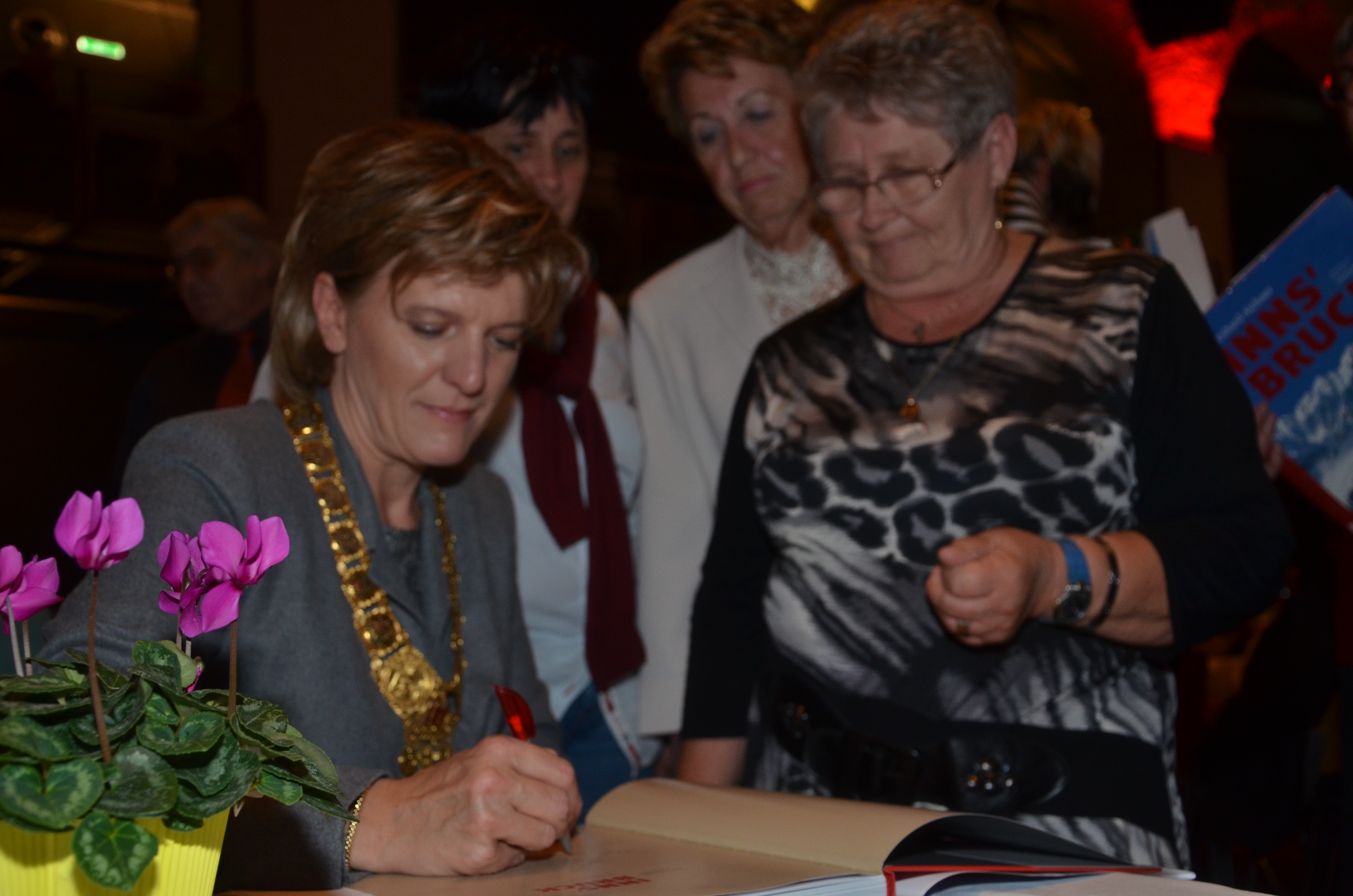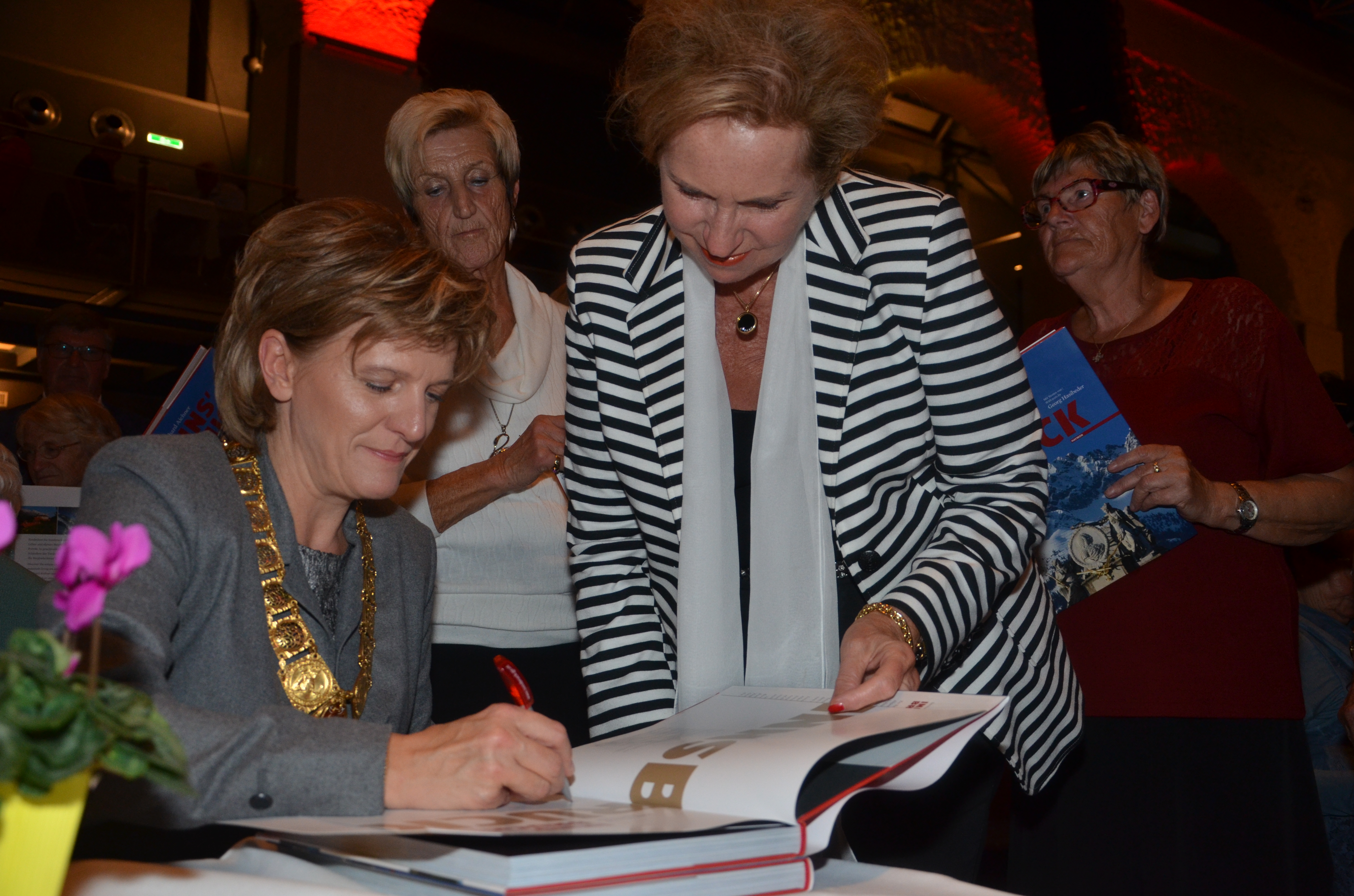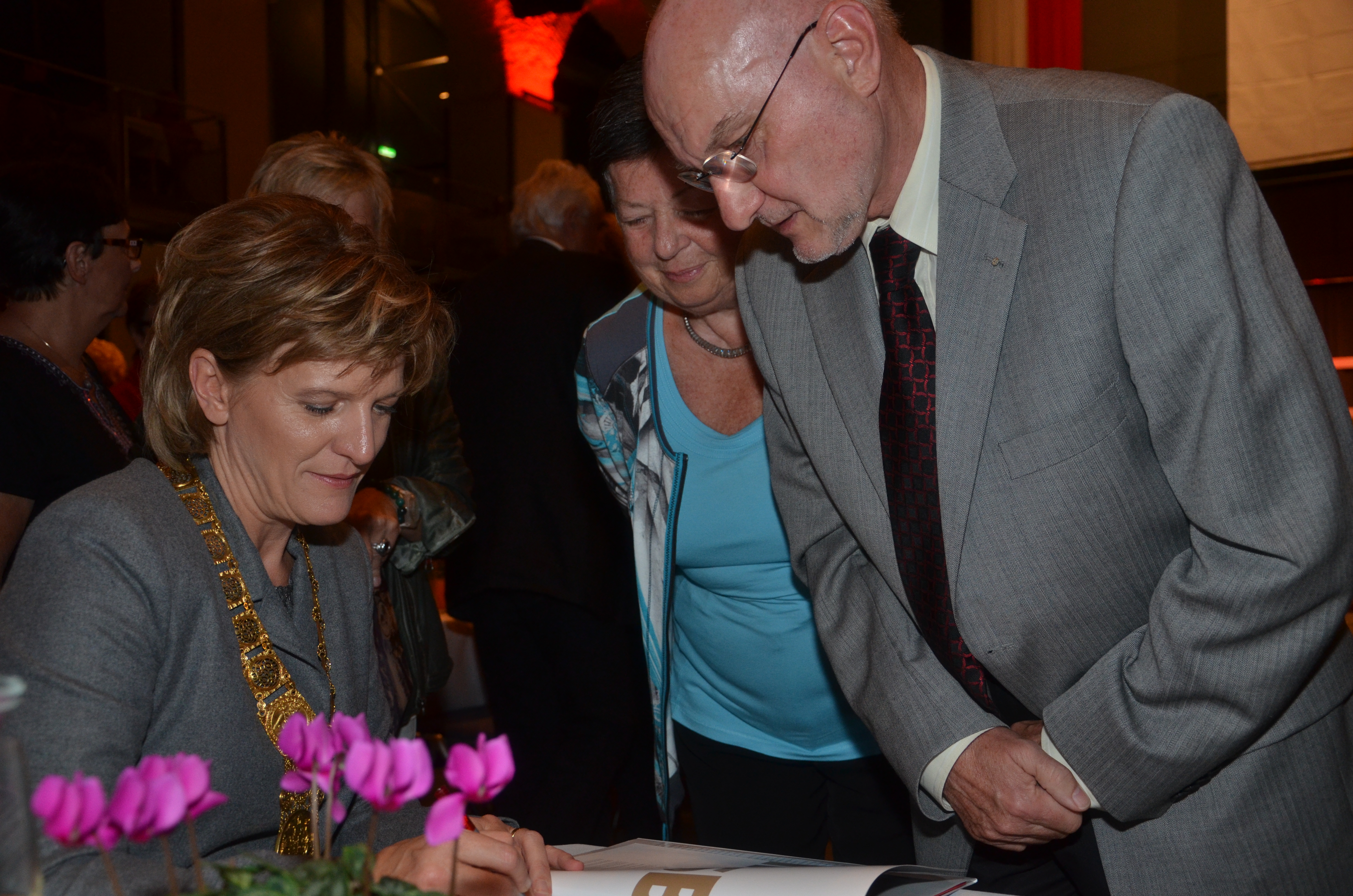 Viele der anwesenden "Geburtstagskinder" holten sich noch eine Unterschrift von Bürgermeisterin Christine Oppitz-Plörer, die gerne jeden Singier-Wunsch erfüllte.