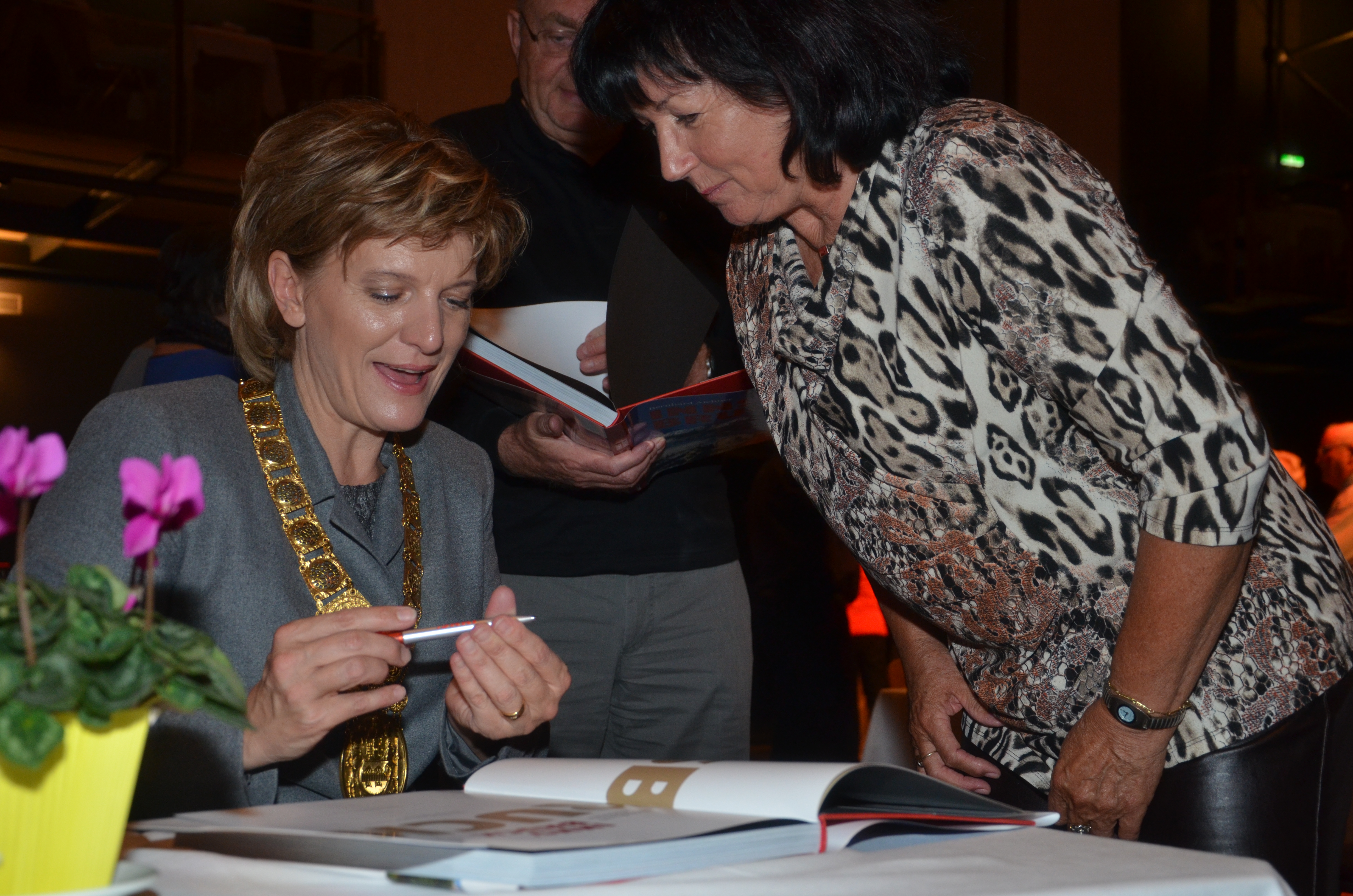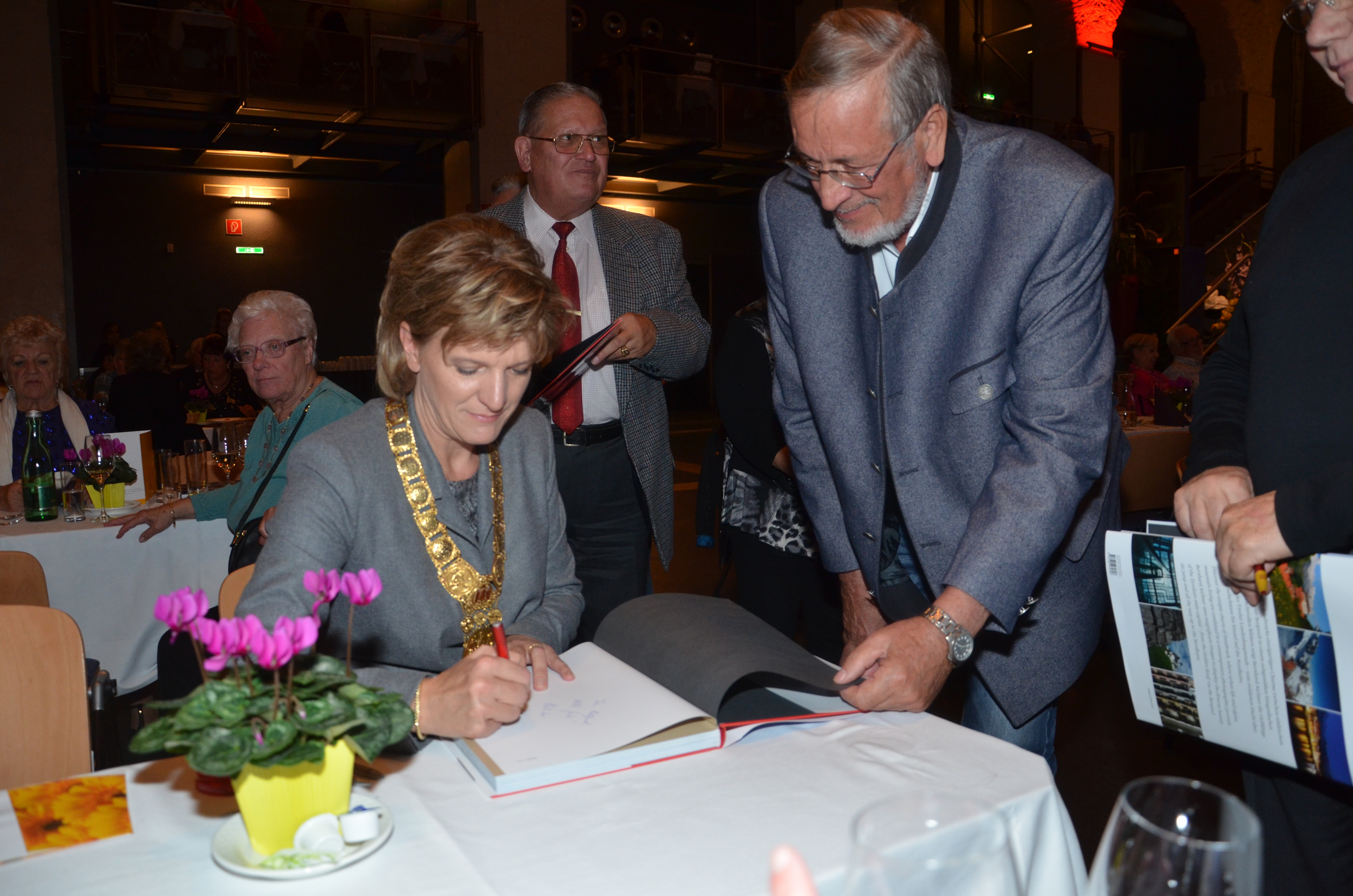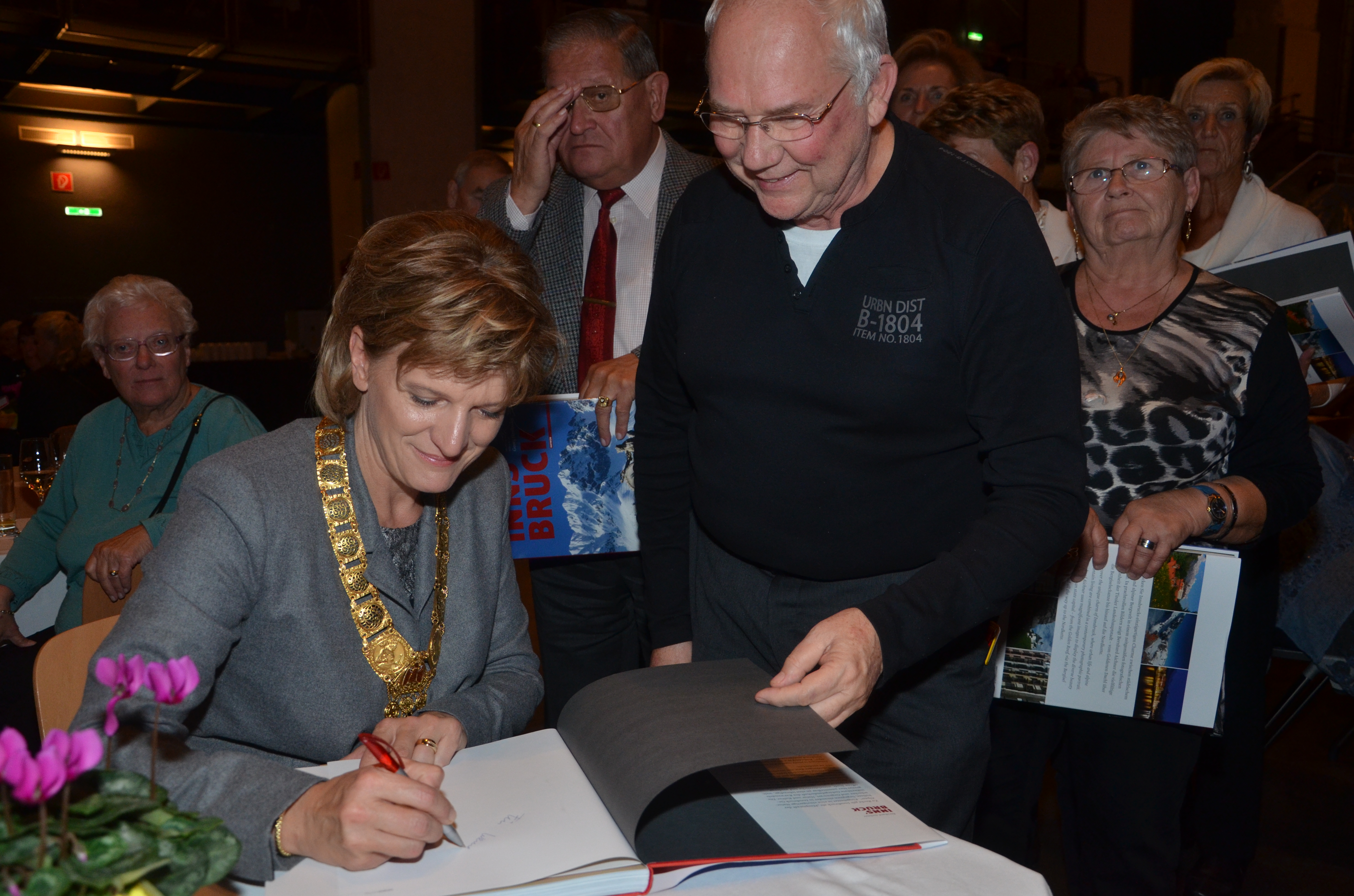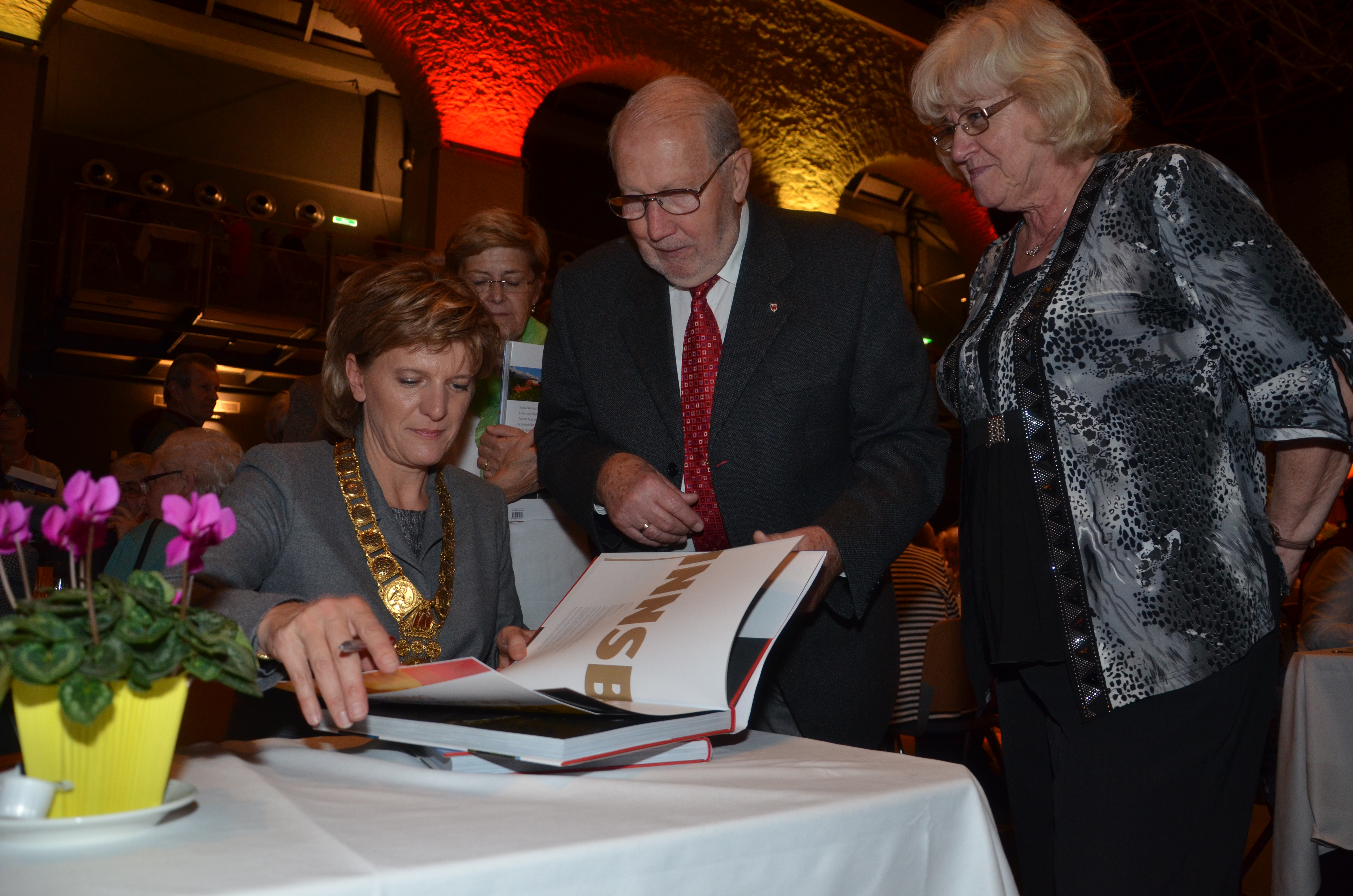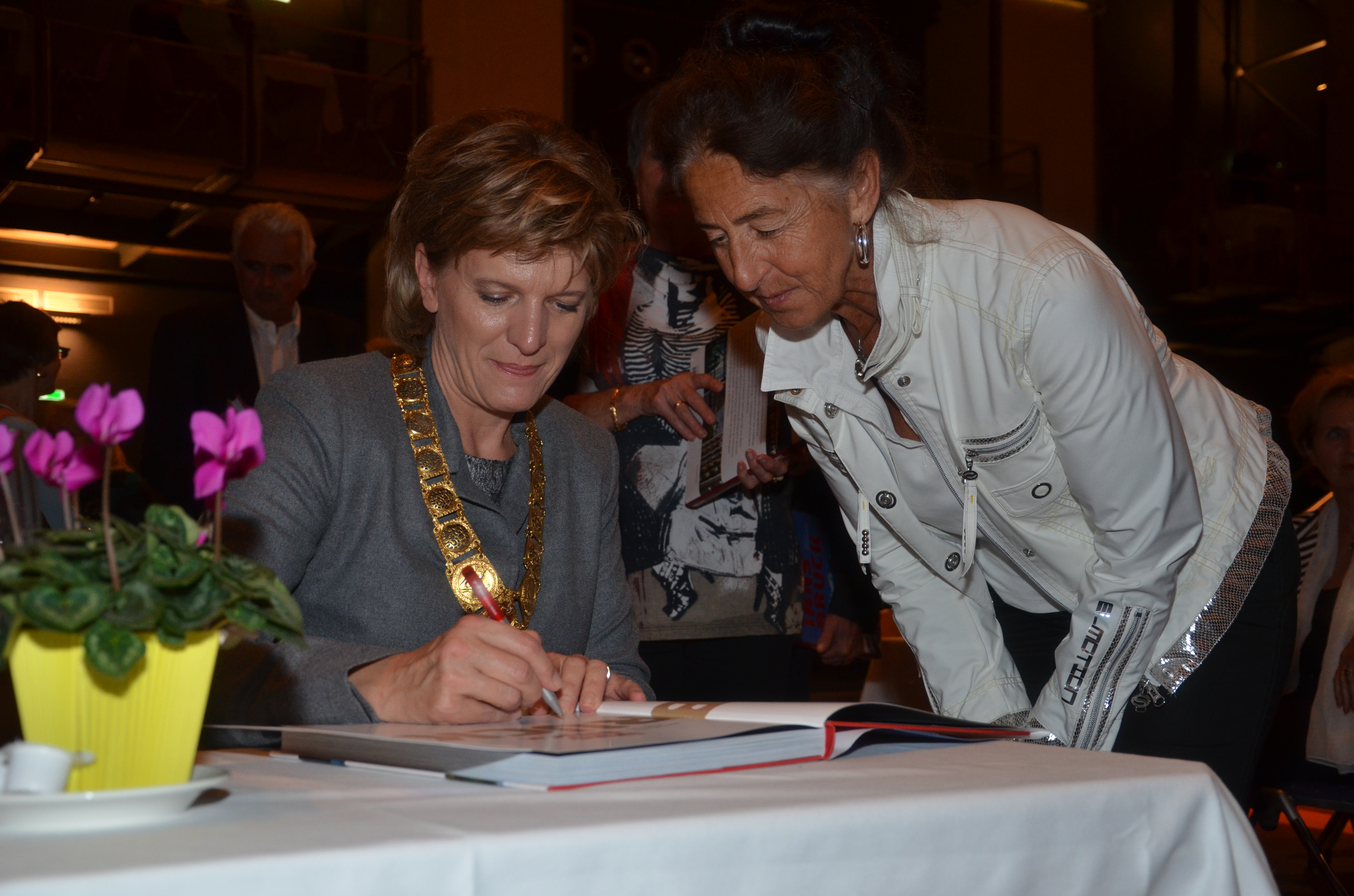 Viele der anwesenden "Geburtstagskinder" holten sich noch eine Unterschrift von Bürgermeisterin Christine Oppitz-Plörer, die gerne jeden Singier-Wunsch erfüllte.