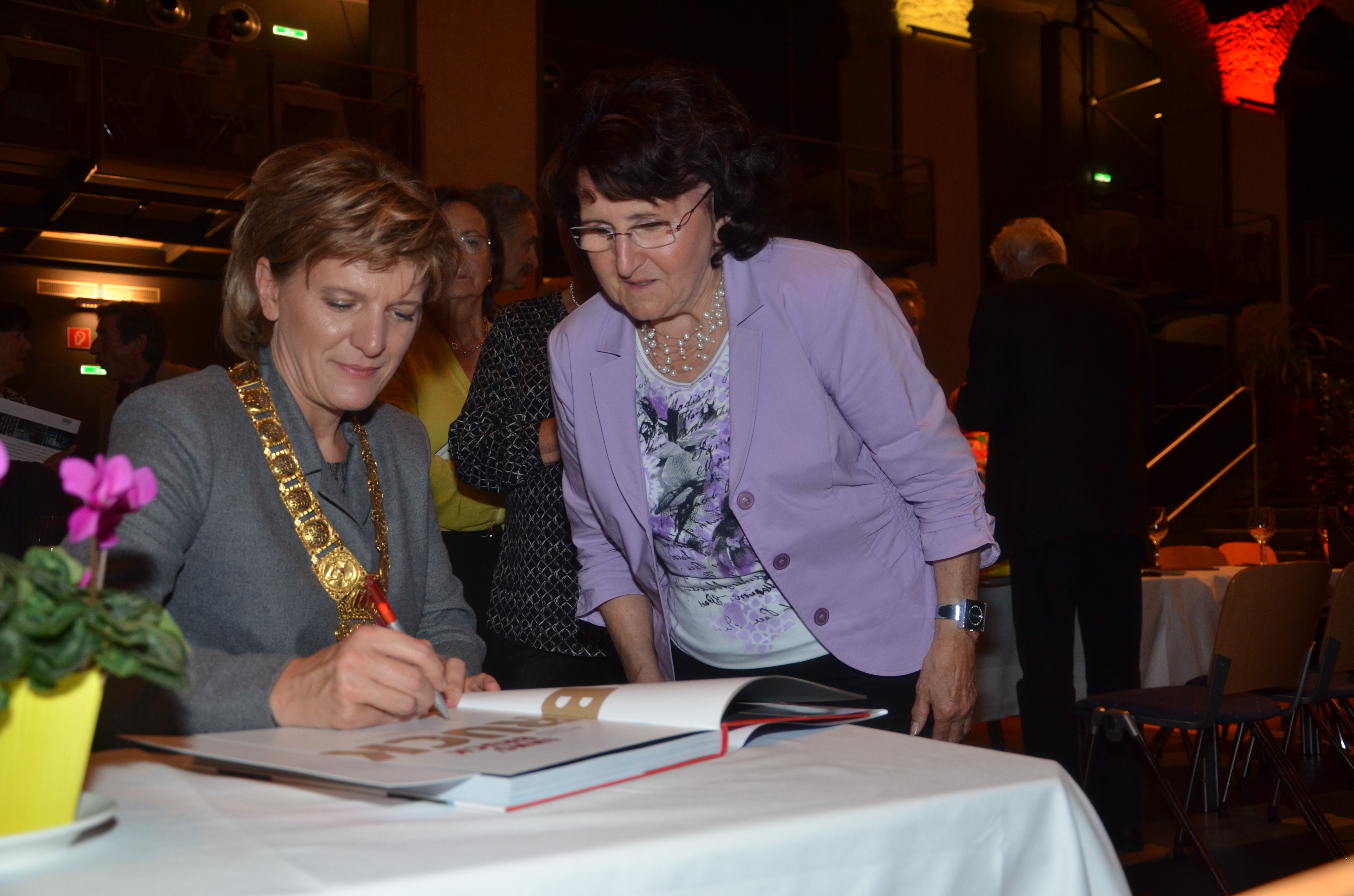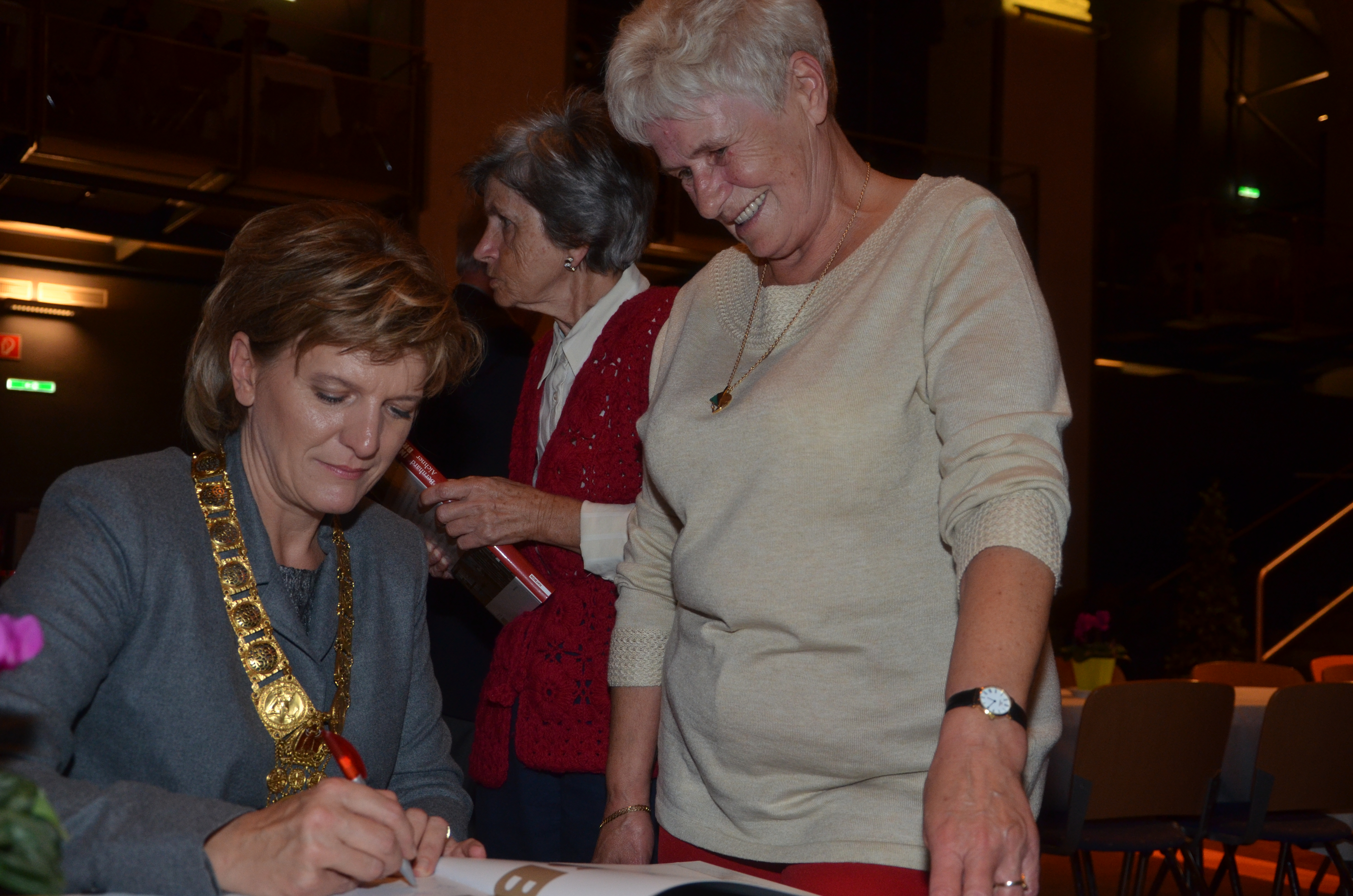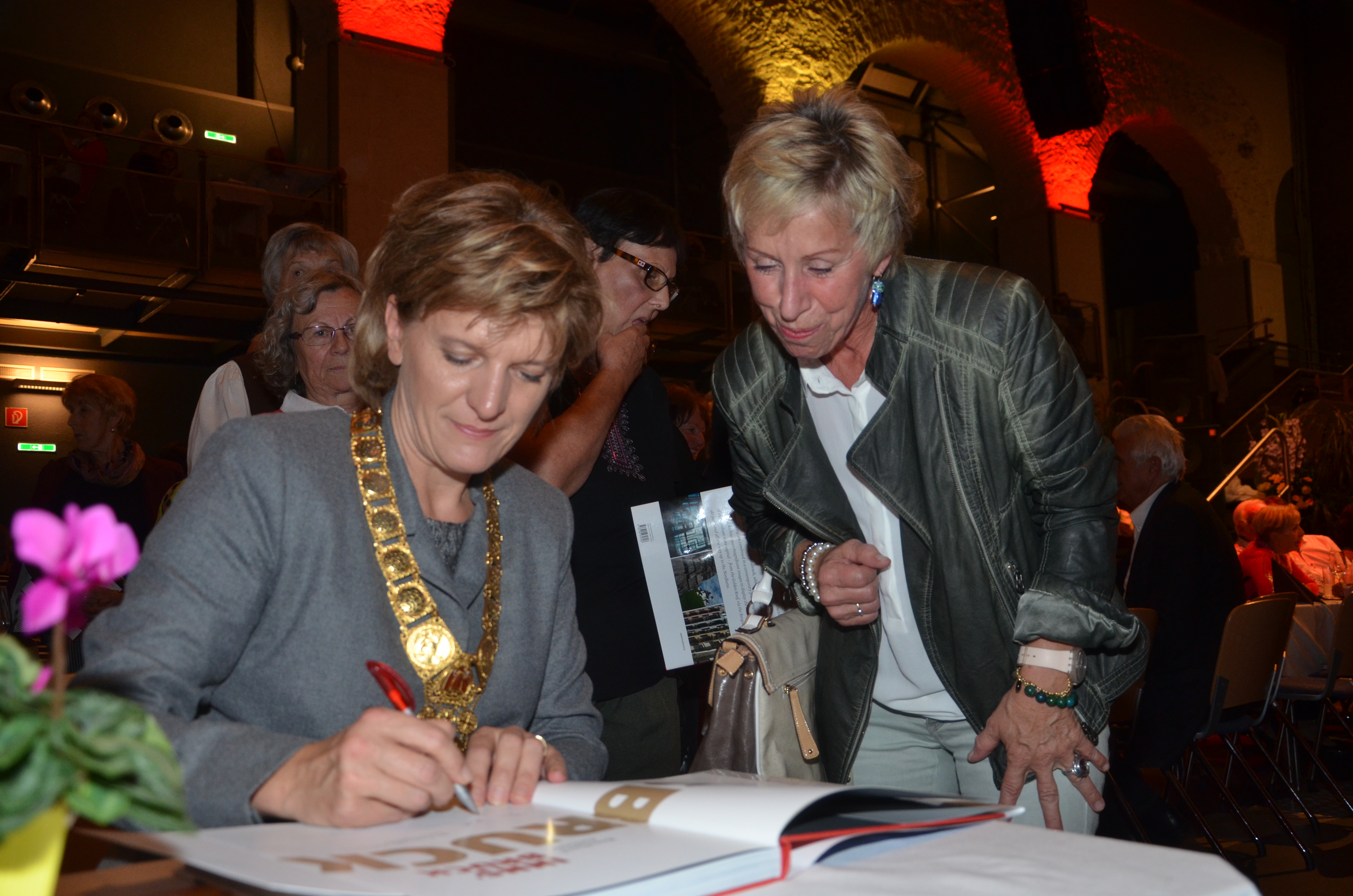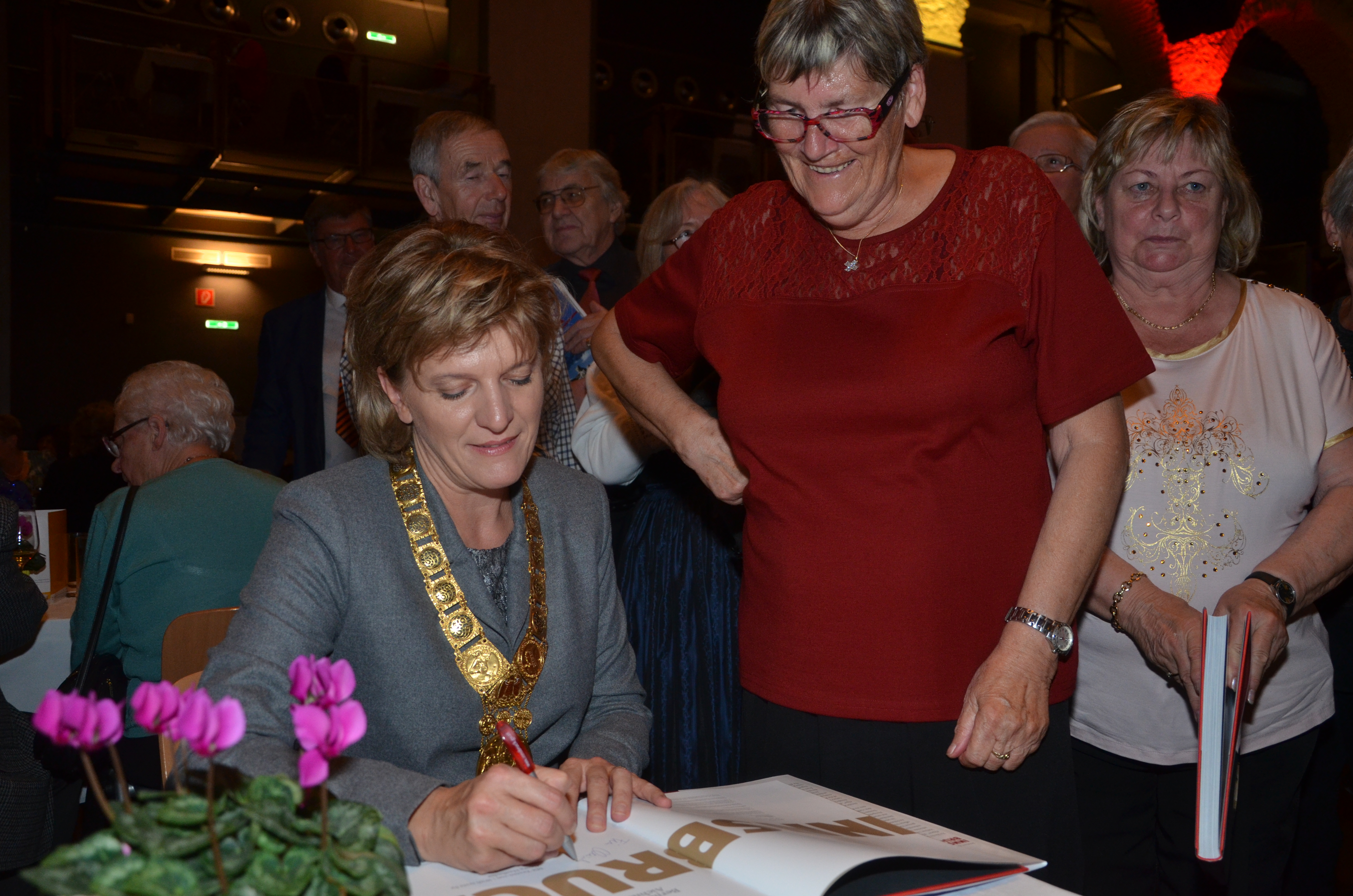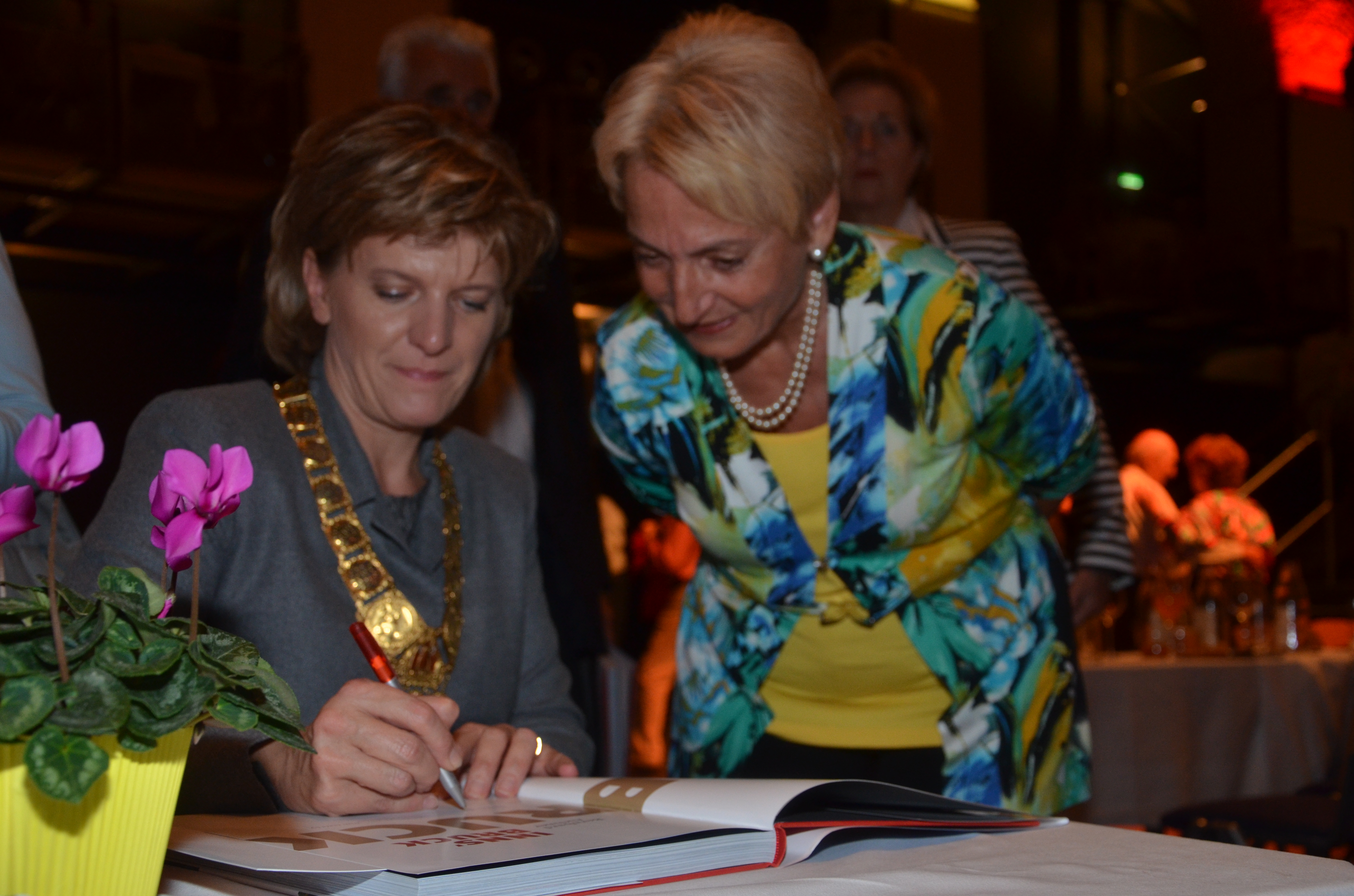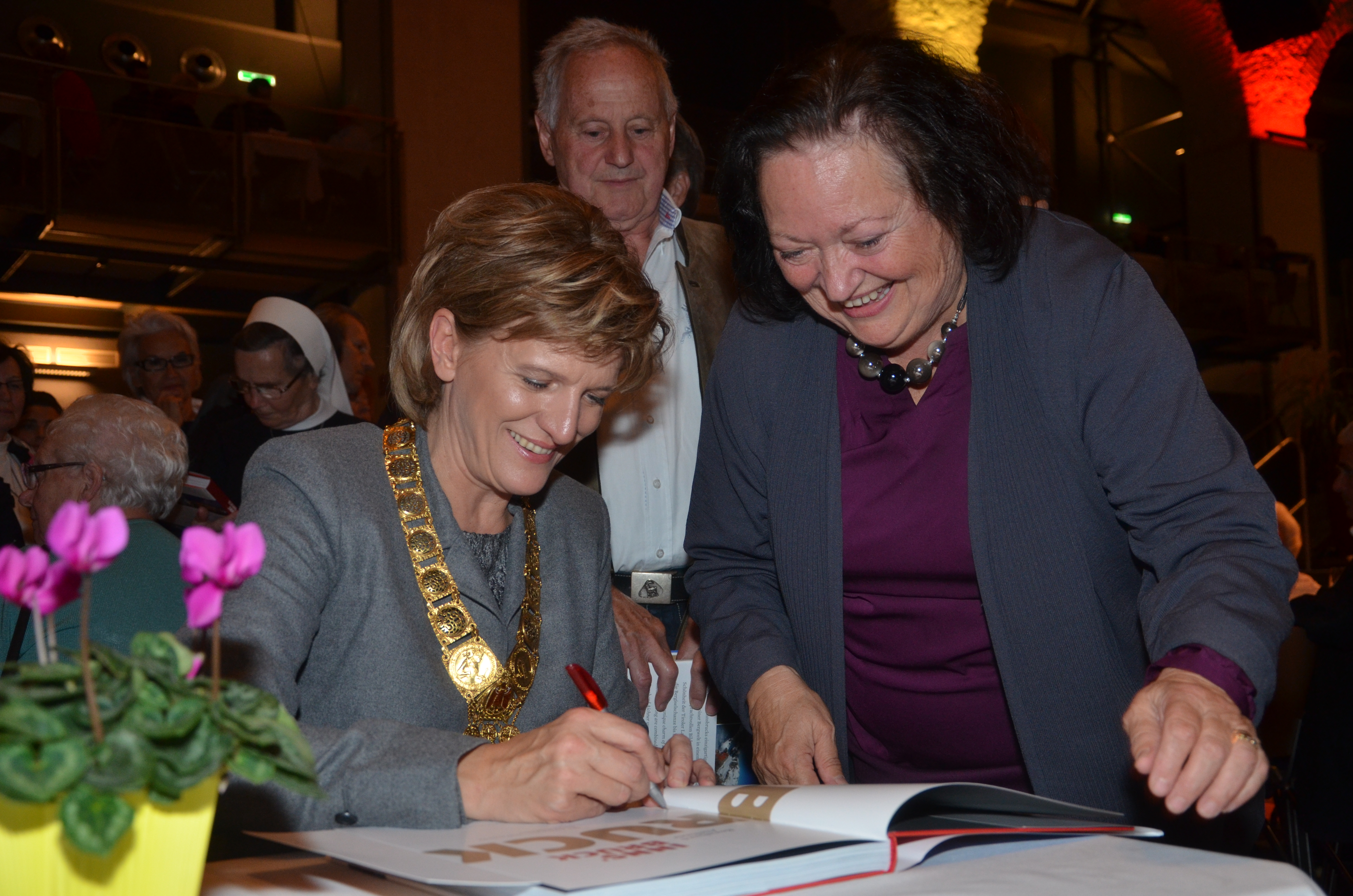 Viele der anwesenden "Geburtstagskinder" holten sich noch eine Unterschrift von Bürgermeisterin Christine Oppitz-Plörer, die gerne jeden Singier-Wunsch erfüllte.