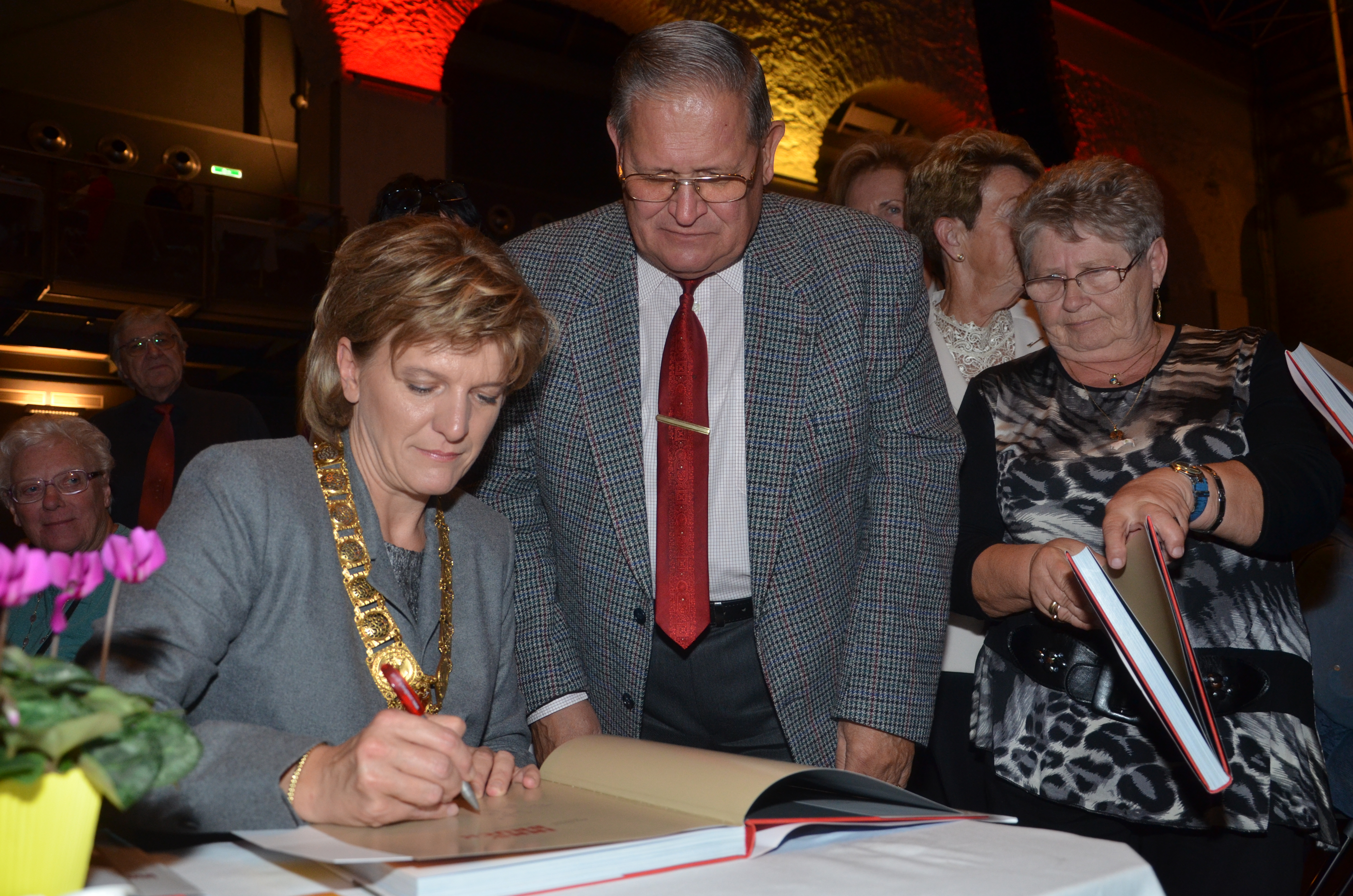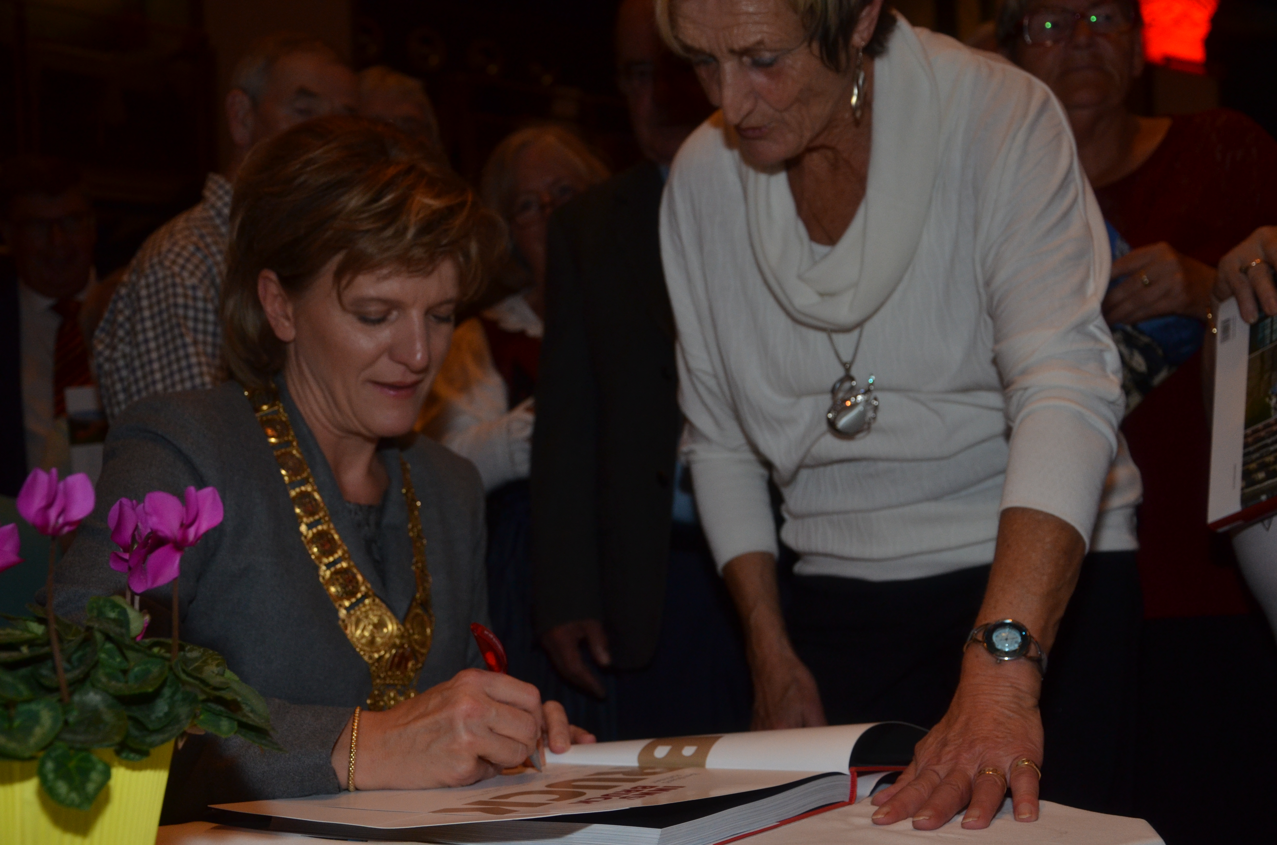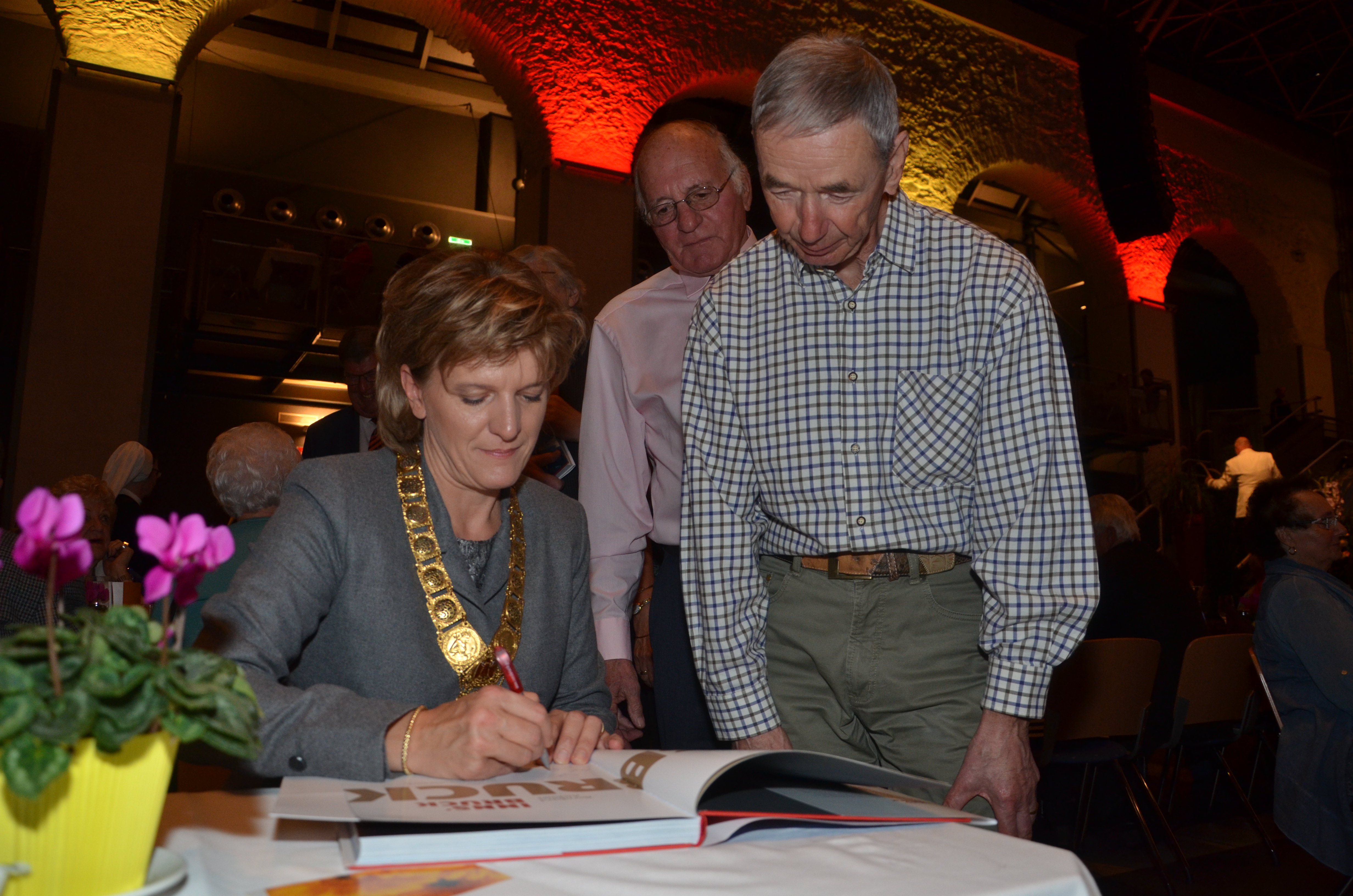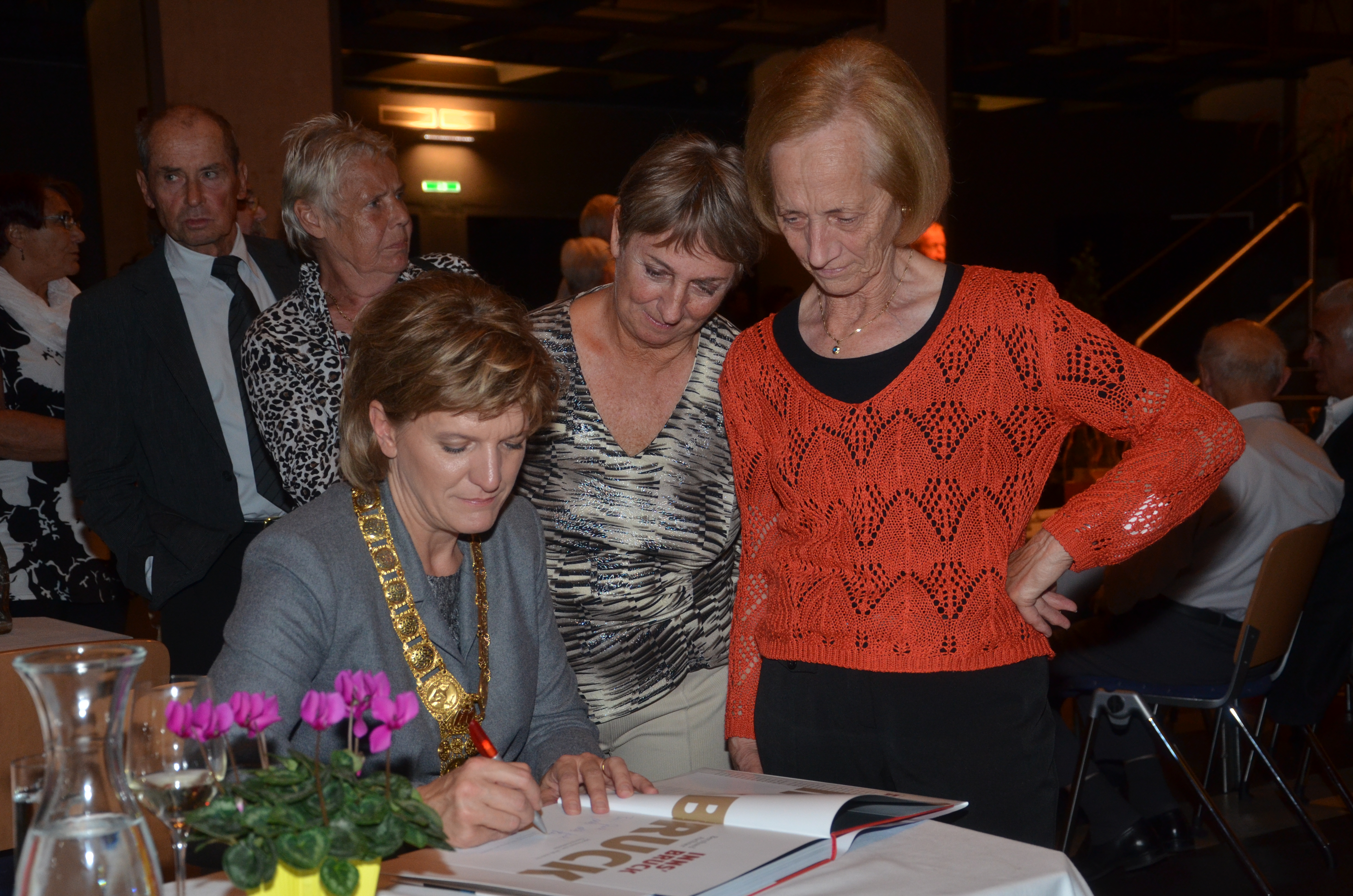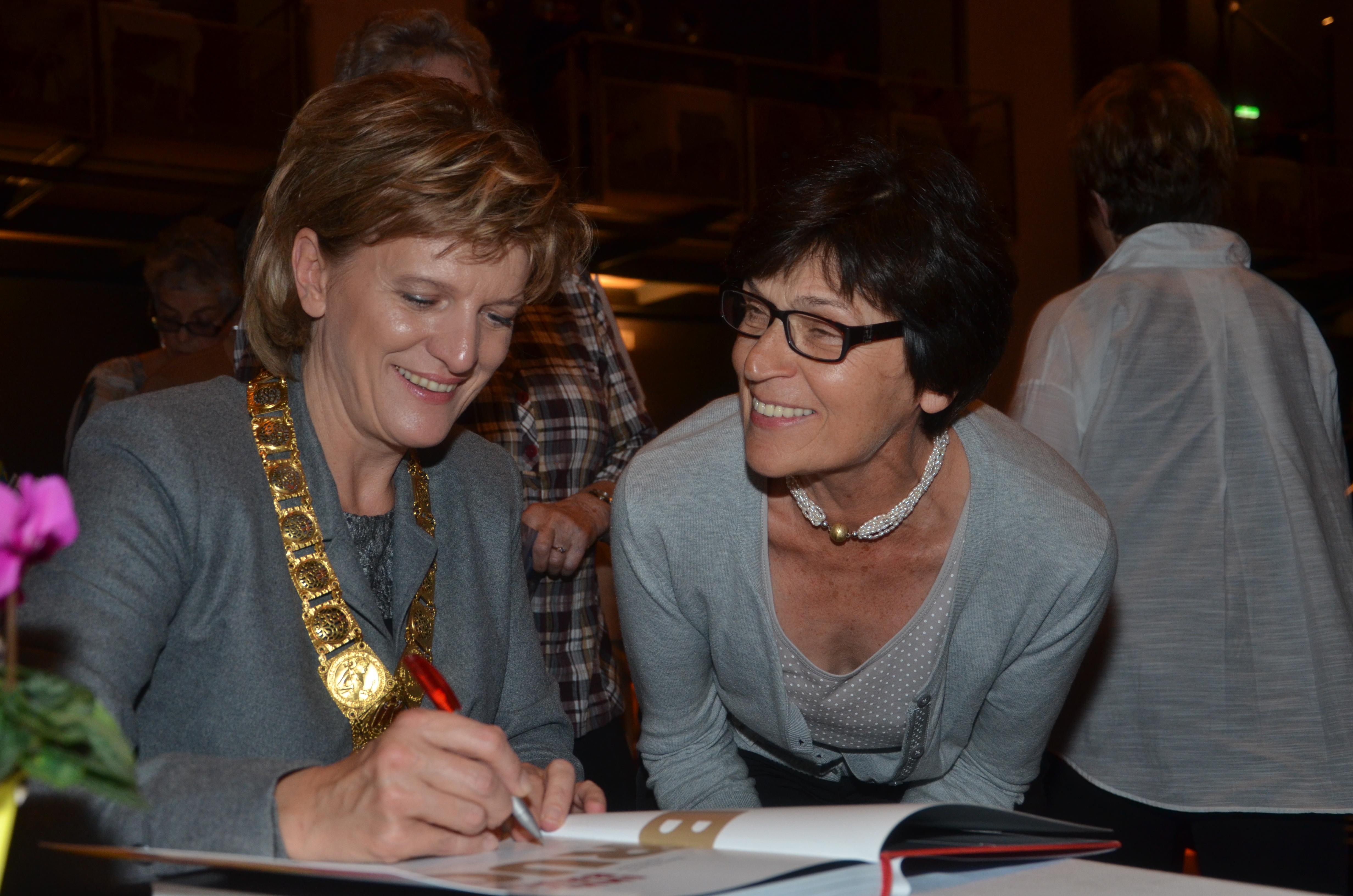 Viele der anwesenden "Geburtstagskinder" holten sich noch eine Unterschrift von Bürgermeisterin Christine Oppitz-Plörer, die gerne jeden Singier-Wunsch erfüllte.