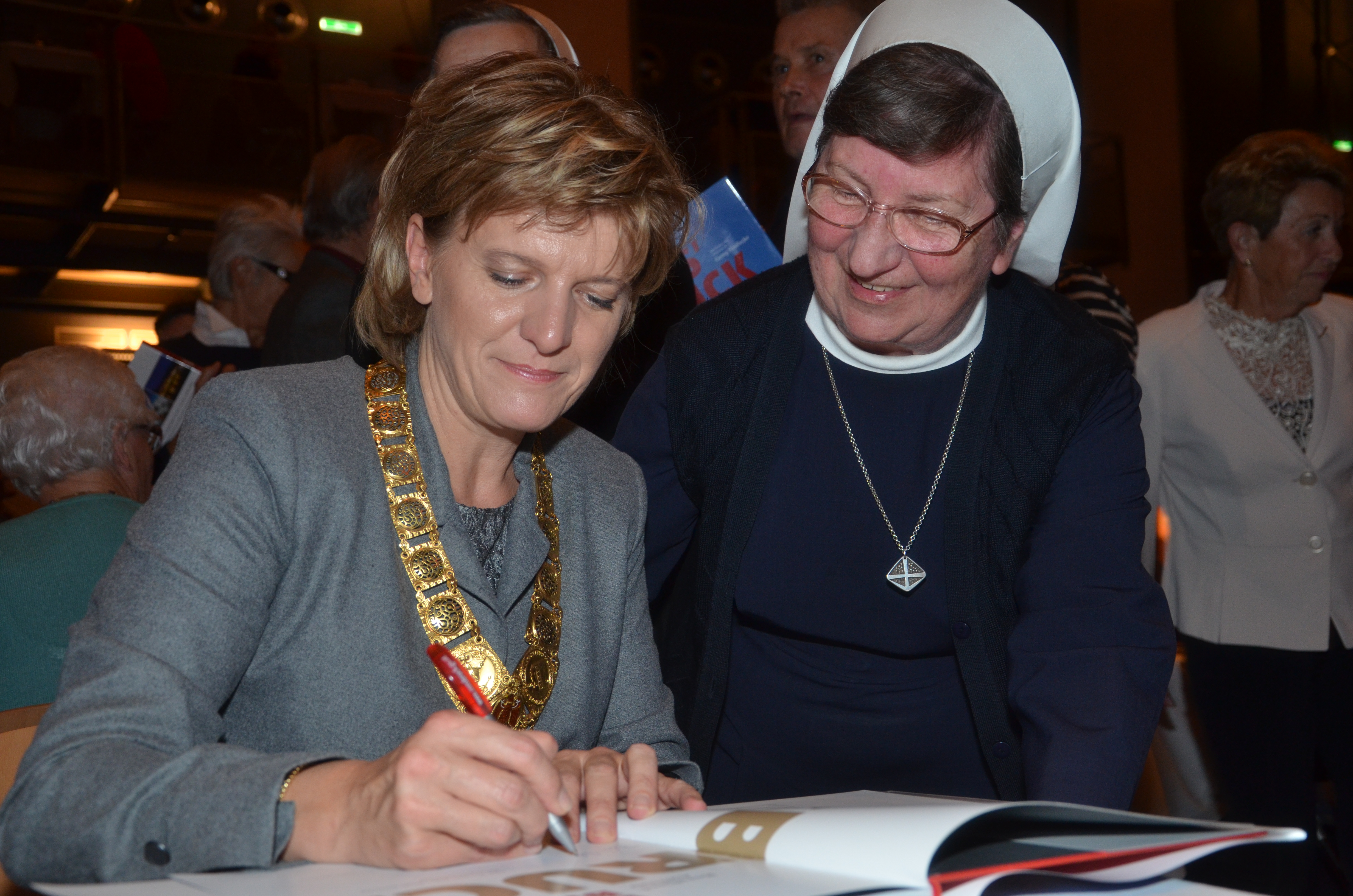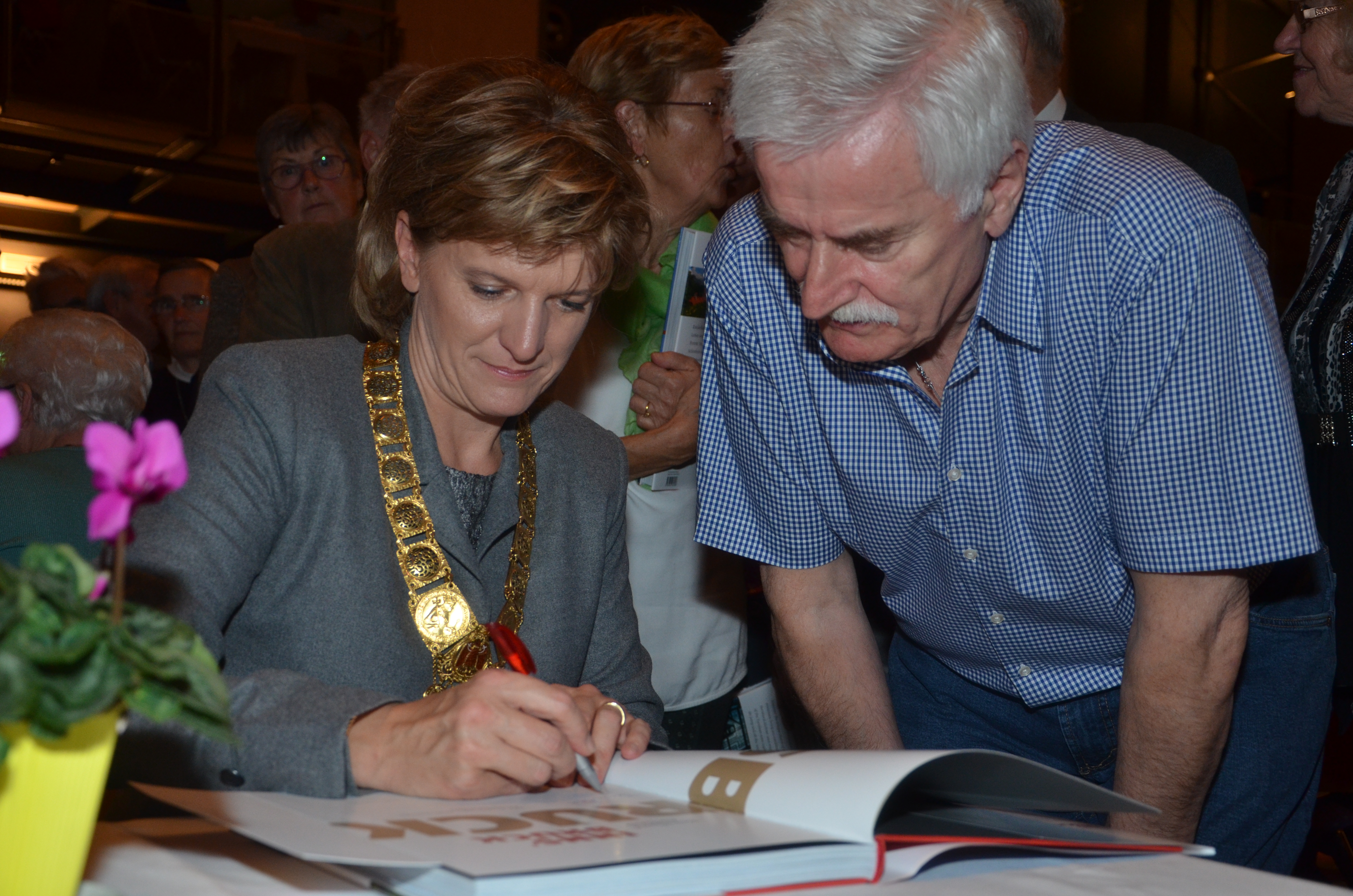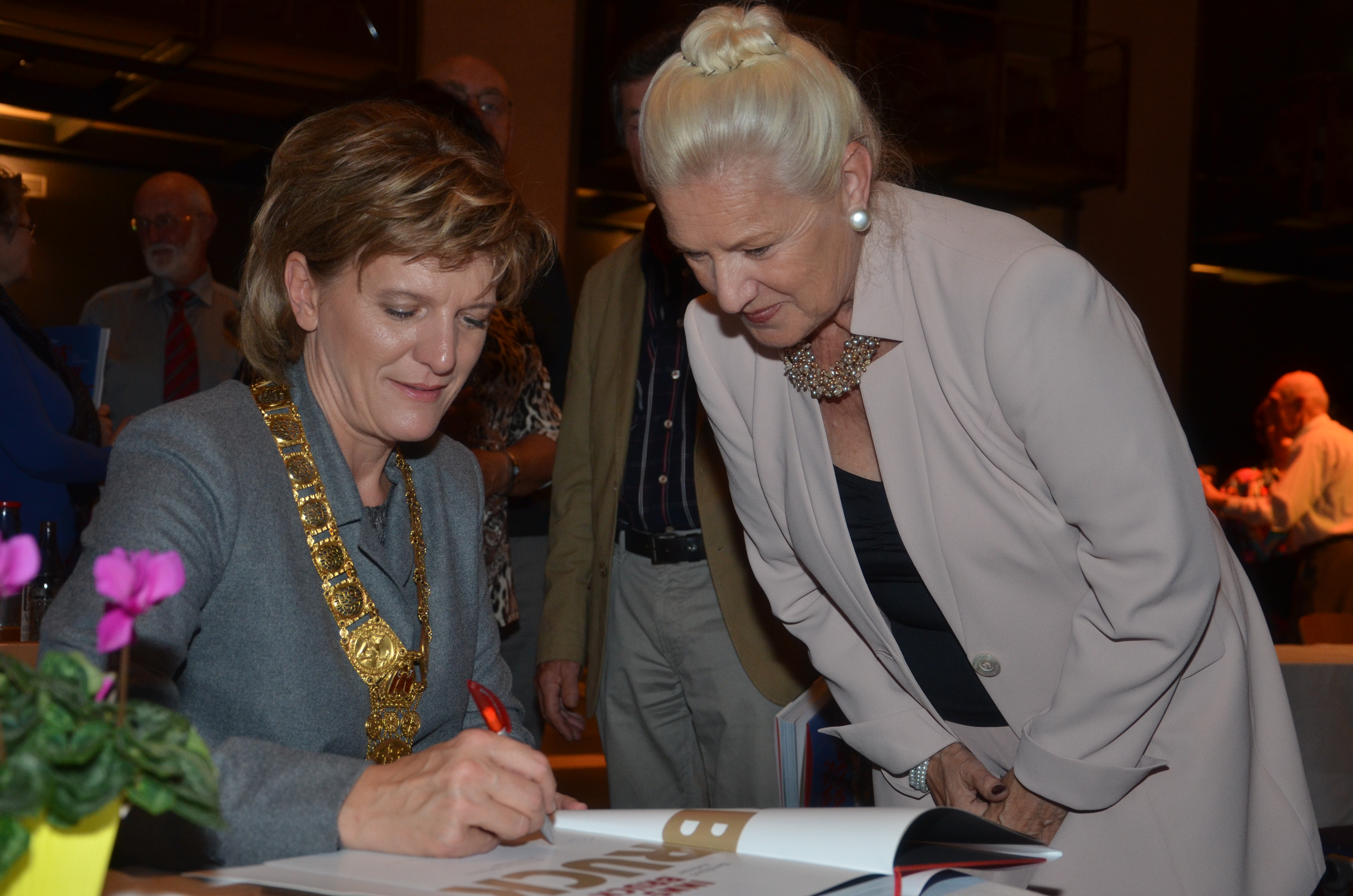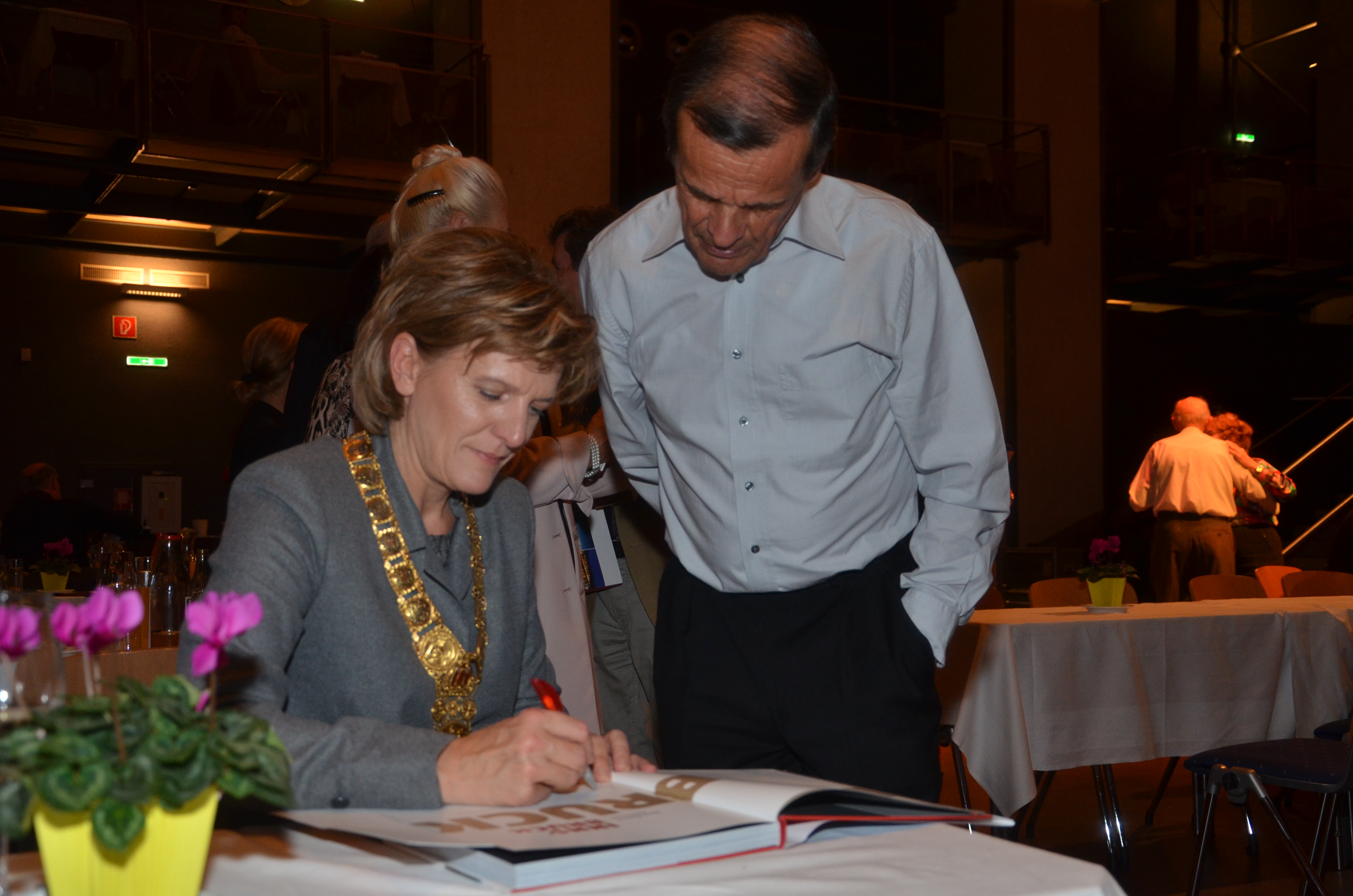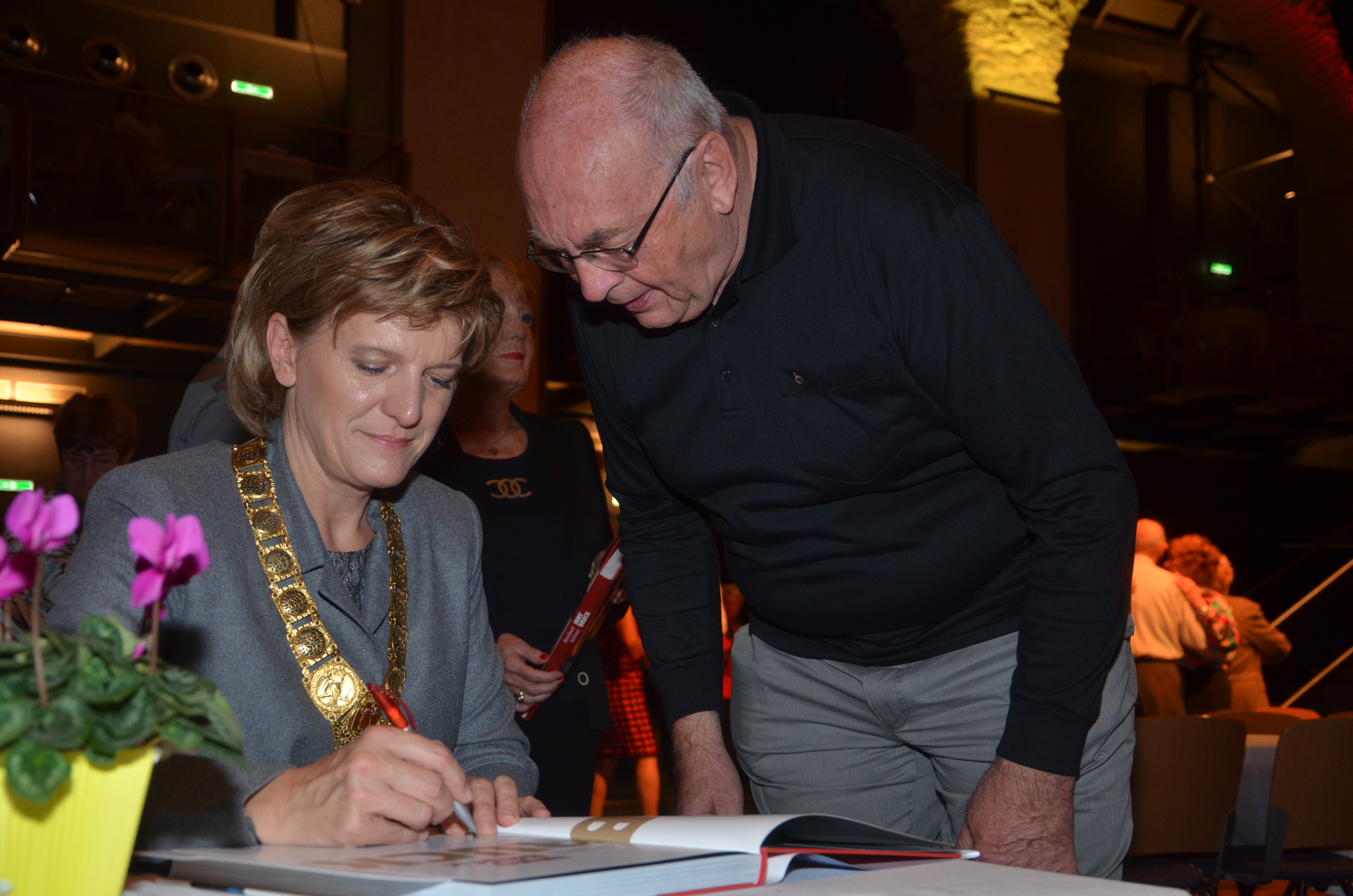 Viele der anwesenden "Geburtstagskinder" holten sich noch eine Unterschrift von Bürgermeisterin Christine Oppitz-Plörer, die gerne jeden Singier-Wunsch erfüllte.