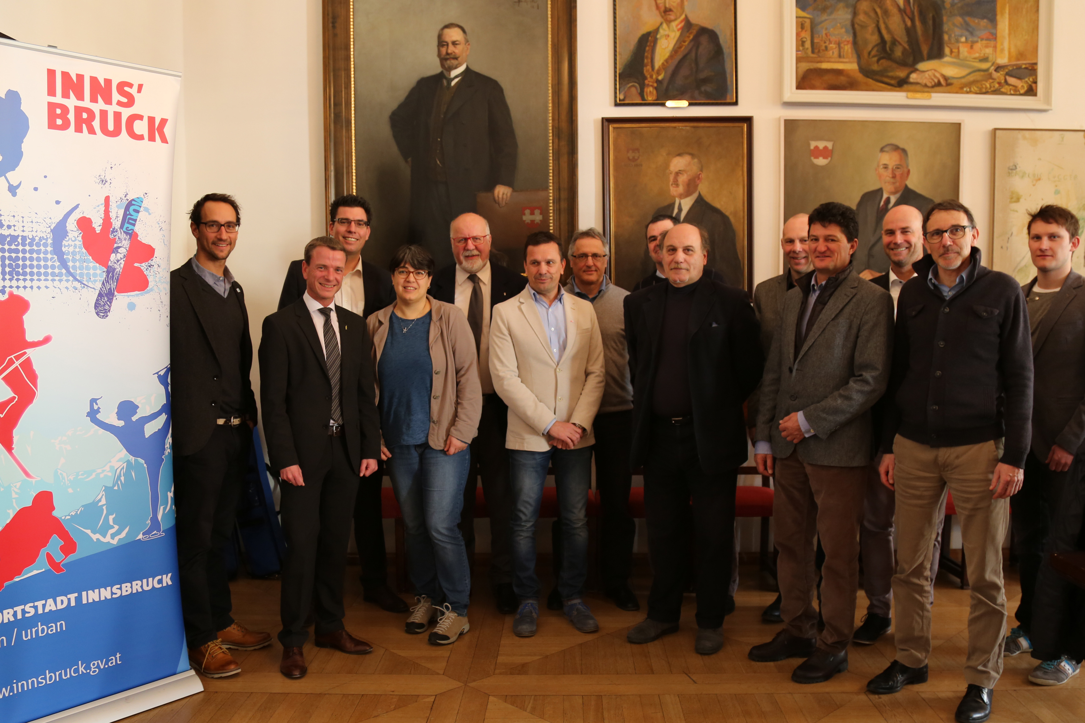 Vertreter der Europaregion Tirol, Südtirol und Trentino folgten der Einladung von Vizebürgermeisters Christoph Kaufmann zu einem Arbeitsmeeting zur Entwicklung eines Länderübergreifenden Eventformates für jugendliche unter dem Arbeitstitel „Euregio Spiele“.