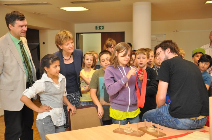 Zum „Fest der Mathematik“ wurde am 27. Juni in die Volkshochschule Innsbruck eingeladen. Insgesamt 200 SchülerInnen der vierten Klassen der Innsbrucker Volksschulen nahmen das Angebot an, in die Welt der Mathematik einzutauchen. Auch Bürgermeisterin Mag.a Christine Oppitz-Plörer ließ sich diesen „Event“ in ihrer Funktion als Vorsitzende der Volkshochschule Tirol nicht entgehen.
