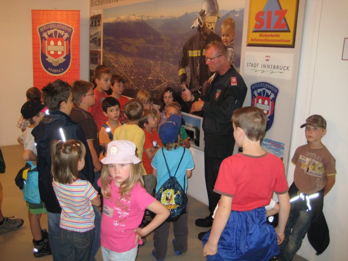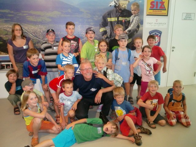 20 Kinder besuchten am 10. August im Rahmen des Sommerferienzuges die Berufsfeuerwehr Innsbruck. Begleitet wurden die jungen Besucher von Branddirektor Mag. Erwin Reichel sowie von Vizebürgermeister Christoph Kaufmann und Landesrätin Patrizia Zoller-Frischauf.