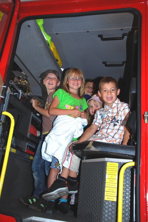 Auf Feuerwehrautos kraxeln, Einsatzbekleidung anprobieren, ein echtes Feuer bekämpfen und dabei Wissenswertes über die Feuerwehr erfahren.