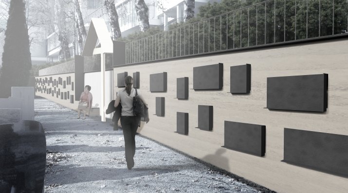 Die bestehende Begrenzungswand des Friedhofs Hötting zum Wohn- und Pflegeheim befindet sich in einem schlechten Erhaltungszustand. Die Wand soll nun neu errichtet und zudem mit dringend benötigten Urnengräbern ausgestattet werden. Um diese sensible Bauaufgabe qualitätsvoll lösen zu können, wurde von der Stadt Innsbruck, vertreten durch die Innsbrucker Immobilien Service GmbH (IISG) ein Wettbewerb ausgelobt, zu dem fünf Architekturbüros eingeladen wurden.