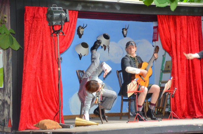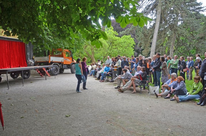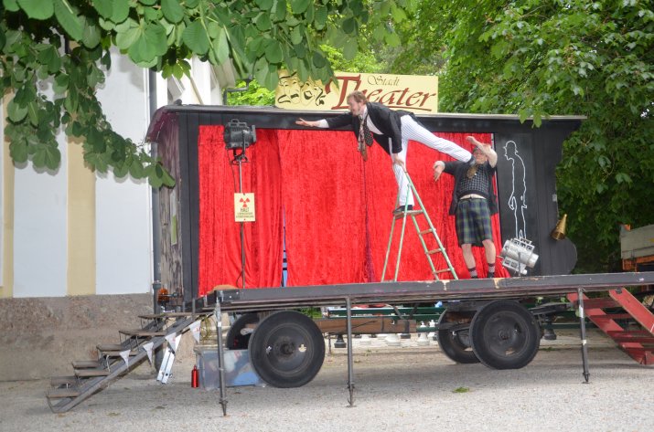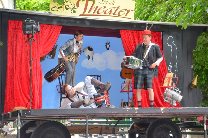 Zahlreiche BesucherInnen – darunter auch Abteilungsleiterin MA V Mag.a Birgit Neu, Kulturamtsleiter Horst Burmann und Personalamtsleiter Mag. Ferdinand Neu – hatten sich am 9. Juni im Hofgarten eingefunden und warteten gespannt, bis sich der Vorhang des Innsbrucker Straßentheaters 2013 zum ersten Mal lüftete. Und ihre Erwartungen wurden nicht enttäuscht: Julia Urban, Hans Danner und Markus Rupert vom Theater praesent sorgten mit der humorvollen Produktion „Theater in der Vorstadt“ von Karl Valentin für Unterhaltung der Extraklasse.