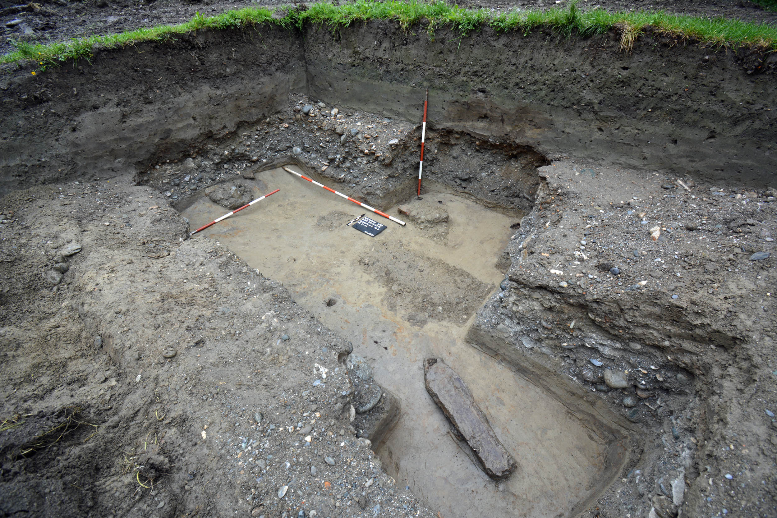 „Erst unter diesen Planierschichten sind wir auf Reste der Baracken-Unterkonstruktion gestoßen“, erläutert Ass.-Prof.in Dr.in Barbara Hausmair vom Institut für Archäologien der Uni Innsbruck. „Das zeigt deutlich, dass bei der Entfernung der südlichen Lager-Bebauung in den 1960er Jahren sehr gründlich vorgegangen wurde und das heutige Geländeniveau deutlich höher – etwa eineinhalb Meter – liegt als die Oberfläche der NS- bzw. Nachkriegszeit.“