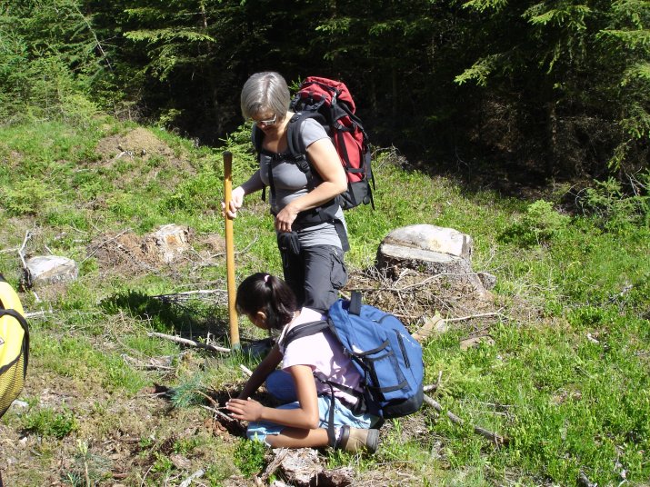 Gestärkt durch ein Mittagessen auf der Aldranser Alm durften die Kinder schließlich noch selbst Hand anlegen und kleine Fichten (Baum des Jahres 2011) in einem Aufforstungsgebiet anpflanzen.