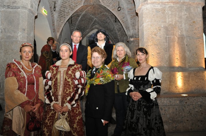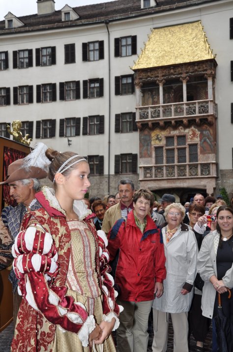 Die Reisenden wurden in Innsbruck von den GRin Herlinde Keuschnigg und der Kulturausschussvorsitzenden GRin Mag. Gerti Mayr in Vertretung von StRin Dr. Patrizia Moser bei einem feierlichen Empfang im Bürgersaal des Alten Rathauses bzw. abends in der Innsbrucker Hofburg in Anwesenheit der Geschwister Johannas Ferdinand II. und Magdalena willkommen geheißen. Ebenfalls im Gefolge der Herzogin: Kulturamtsleiter Horst Burmann und Abteilungsleiterin Mag. Birgit Neu.