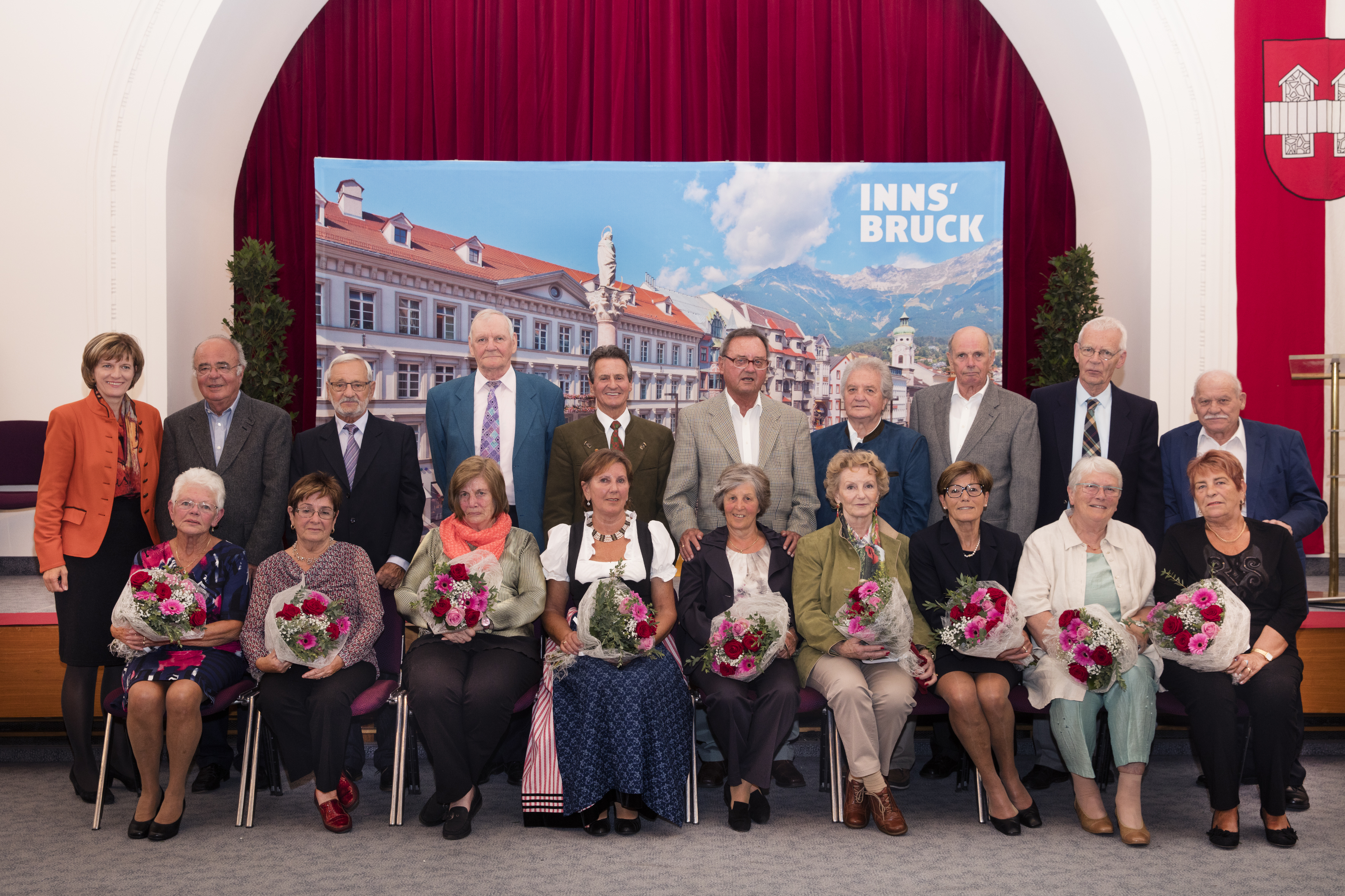 Für insgesamt 37 Innsbrucker Ehepaare bot der 21. September einen weiteren Anlass zu feiern: Bürgermeisterin Mag.a Christine Oppitz-Plörer lud elf Diamantene und 26 Goldene Hochzeitspaare zu einer stimmungsvollen Feier in die Ursulinensäle.