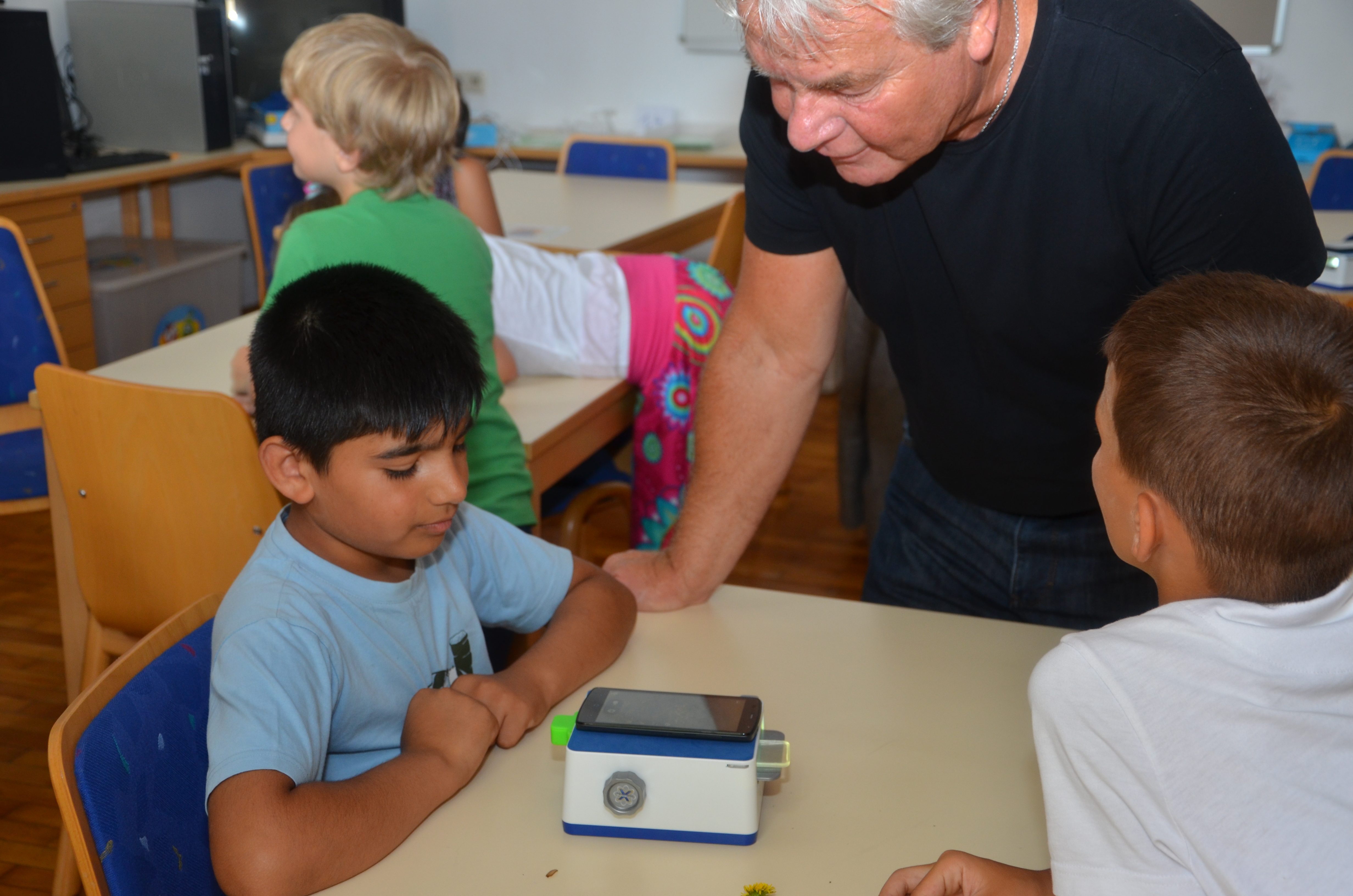 Stadtrat Ernst Pechlaner machte sich bei seinem Besuch ein Bild von der klassenübergreifenden Aktion: „Ich freue mich über die Begeisterung der Mädchen und Buben an diesem Projekt. Es gelingt mit einfachen Mitteln, sie für ein Thema zu interessieren und Zusammenhänge zu begreifen. Besonders erwähnenswert finde ich die gut durchdachte und vorbereitete Unterstützung der Lehrpersonen.“