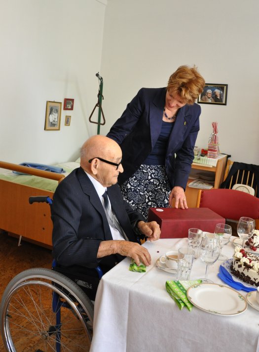 Bei bester Gesundheit und gut gelaunt zeigte sich Ing. Georg Cernusca, als Bürgermeisterin Mag.a Christine Oppitz-Plörer ihm in der Seniorenresidenz Veldidena zu seinem 104. Geburtstag gratulierte. Oppitz-Plörer überbrachte dem Geburtstagskind die besten Glückwünsche und ein kleines Geschenk der Stadt Innsbruck. Der Jubilar freute sich sichtlich über die schöne Feier und war gerührt vom hohen Besuch. „Ich freue mich, Sie bei bester Gesundheit zu sehen. Sie haben sich seit dem letzten Jahr kaum verändert“, gratulierte Bgm. Oppitz-Plörer.