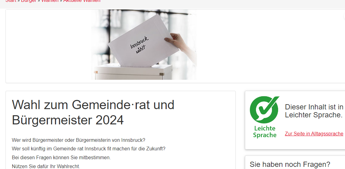 Alle wichtigen Details zum Thema Wahlen sind auch online unter www.innsbruck.gv.at/wahlen verfügbar.