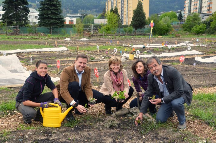 Am 18. April fand der symbolische Spatenstich zur Eröffnung des rund 5.000 m² Gemeinschaftsgartens statt. Aus diesem Anlass pflanzten Bürgermeisterin Mag.a Christine Oppitz-Plörer und Stadtrat Mag. Gerhard Fritz gemeinsam mit Mag. Thomas Wass (Marketingleiter von Hauptsponsor Raiffeisen Landesbank Tirol) und den Initiatorinnen Romana Mayr und Melanie Zipin (beide vom Verein „freipflanzen“) zwei Ribisel-Beerensträucher für den Naschgarten.