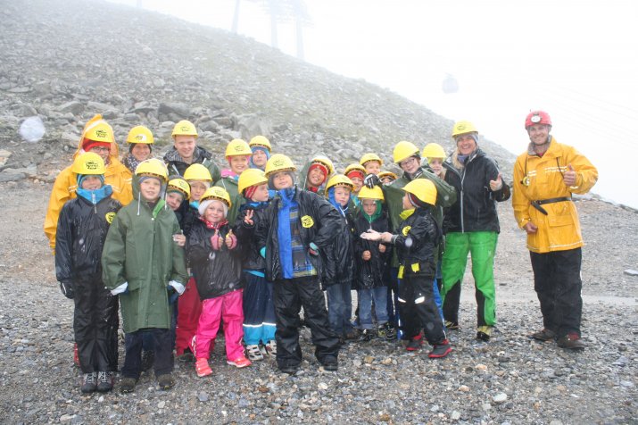 Mitte August war es soweit – der begehrte Ausflug auf den Gletscher stand auf dem Programm. 40 Kinder freuten sich auf die enge Spannagelhöhle und den märchenhaften Eispalast – auch der Regen konnte sie nicht davon abhalten. Einzig auf die großartige Aussicht mussten sie verzichten. Statt angekündigtem Schneefall gab es leider Regen und Sturm, aber bestens ausgerüstet und mit einem wärmenden Feuer und Mittagessen machte ihnen das Wetter kaum etwas aus.