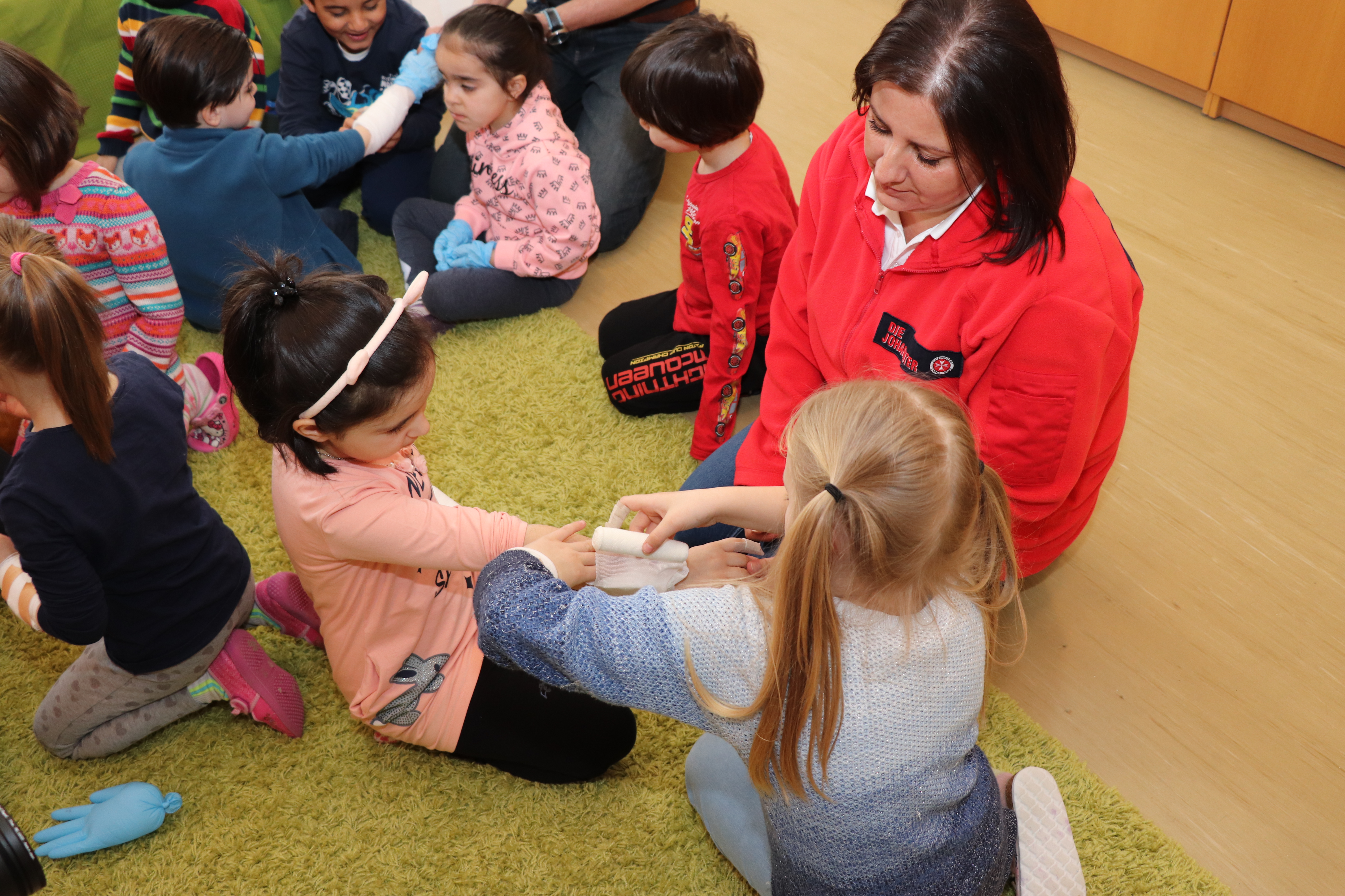 In den 40 Erste-Hilfe-Workshops lernen die Kindergartenkinder im Alter von drei bis sechs Jahren spielerisch die Grundbegriffe der Erste Hilfe.