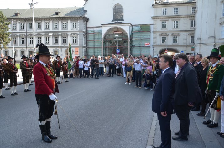Der Verleihung im Riesensaal der kaiserlichen Hofburg ging der landesübliche Empfang voraus, zu dem die Ehrenkompanie Amras aufmarschiert war. Unter den zahlreichen Ehrengästen befanden sich neben Mitgliedern der Tiroler Landesregierung, Stadtrat Mag. Gerhard Fritz, StR Ernst Pechlaner und VertreterInnen des Gemeinderates auch RepräsentantInnen des diplomatischen Korps, zahlreiche Delegierte des Europarates, VertreterInnen des Europäischen Parlamentes, der Behörden und der Universität sowie EhrenzeichenträgerInnen.
