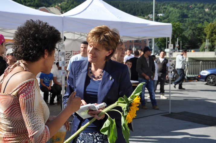 Zur Freude des Veranstalterteams konnte Bürgermeisterin Mag.a Christine Oppitz-Plörer grünes Licht für eine Verlängerung des Festes am Sonntag – dem letzten Veranstaltungstag – bis 19.00 Uhr geben: „Damit hatten auch die Verkaufsstände des Weltmarktes die Möglichkeit ihre Waren noch zwei Stunden länger zu präsentieren und zu verkaufen, nachdem ja das Wetter an den ersten beiden Tagen nicht ganz auf unserer Seite war“, freute sich die Integrationsbeauftragte der Stadt Innsbruck Notburga Troger.