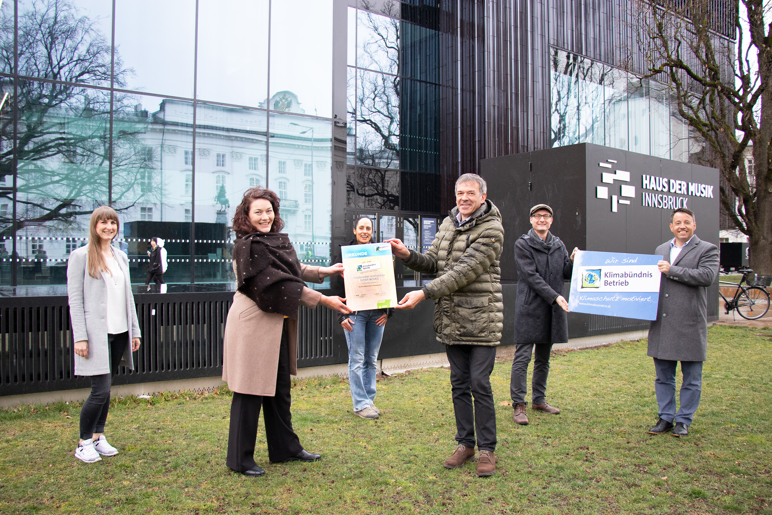 Ca. 6.000 Wohnungen, 300 Geschäftslokale und rund 100 öffentliche Gebäude betreut die Innsbrucker Immobiliengesellschaft (IIG) in der Landeshauptstadt. Sowohl bei der Sanierung und Verwaltung von bestehenden Anlagen, als auch bei neuen Bauprojekten setzt das Unternehmen auf hohe Nachhaltigkeitsstandards. Das 2018 von der IIG errichtete Haus der Musik ist ein öffentliches Vorzeigegebäude. Im ersten Volljahr 2019 konnten die kalkulierten Betriebskosten um knapp 40 Prozent unterschritten werden. „Unser Ziel ist es, durch nachhaltige Investitionen dauerhaft niedrige Betriebskosten über die Lebenszeit eines Gebäudes zu erreichen“, betont IIG-Geschäftsführer Franz Danler. Das gelte auch für das eigene Verwaltungsgebäude, das kürzlich als Klimabündnis-Betrieb ausgezeichnet wurde.