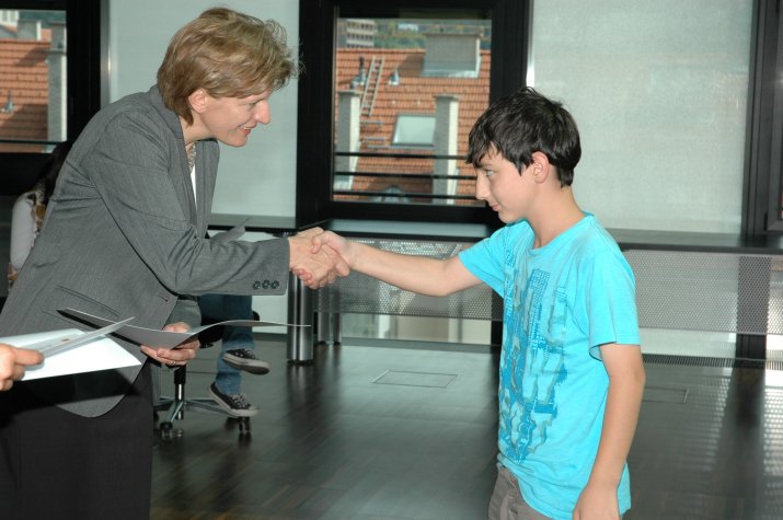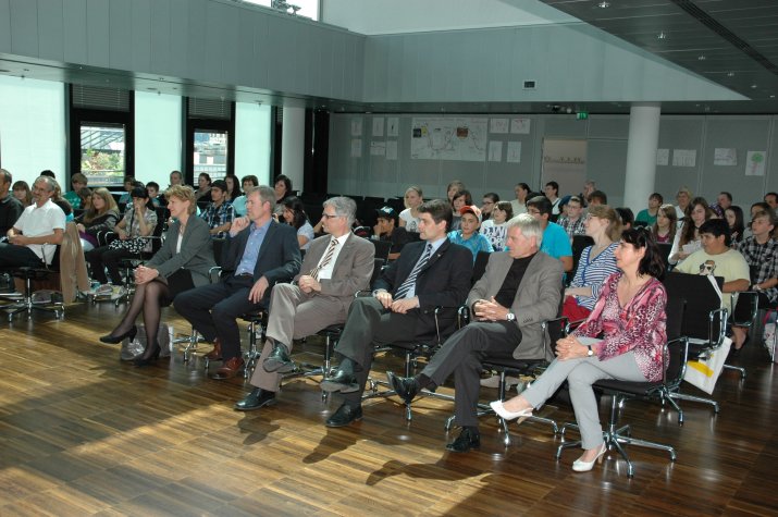 Die 44 Kinder, die an der Kompetenzwerkstatt teilgenommen hatten, erhielten Kompetzen-Zertifikate. Überreicht wurden die Auszeichnungen durch Bürgermeisterin Mag.a Christine Oppitz-Plörer. „Sich seiner Stärken bewusst zu sein hilft, Selbstbewusstsein und Selbstvertrauen zu gewinnen, und damit gerüstet für die Berufswahl und das spätere Leben zu sein“, zeigte sich die Bürgermeisterin überzeugt. An der Zertifikatsverteilung nahmen auch die Projektpartner Univ.-Prof. Dr. Bjorn Ludwig (Zukunftszentrum Tirol), Univ.-Prof. Dr. Werner Mayer (Pädagogische Hochschule Tirol), KR Martin Schaffenrath (AK-Tirol) sowie Notburga Troger (Integrationsstelle Stadt Innsbruck) teil. Außerdem waren Bezirksschulinspektor Ferdinand Treml, Direktorin OSR Helene Rudig sowie die KlassenlehrerInnen und „Coaches“ gekommen. Durch die Veranstaltung führten die beiden Schülerinnen Melanie und Denise, die mit ihren Moderations-Stärken beeindruckten.
