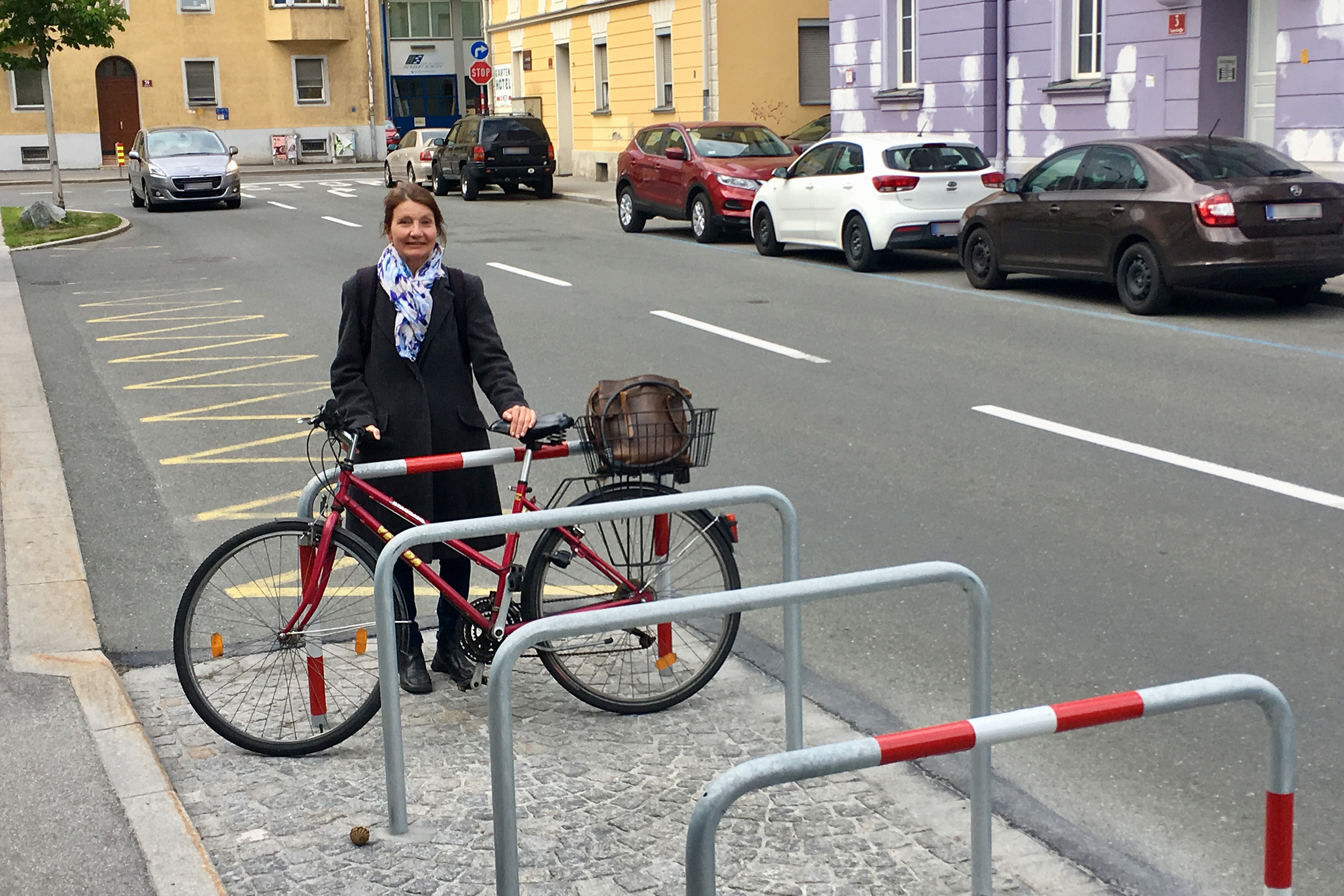 Um die Sicherheit für RadfahrerInnen zu verbessern, wurde nun an dieser Stelle ein Parkplatz durch Radbügel ersetzt. Damit ist nicht nur das Sichtfeld größer, auch für das StudentInnenheim und das Schwimmbad Hötting stehen zusätzliche Radabstellplätze zur Verfügung.