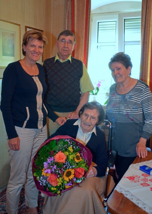 Am 7. August 1913 erblickte Eleonore Andere das Licht der Welt. Anlässlich ihres 101. Geburtstags stattete auch ihr Bürgermeisterin Christine Oppitz-Plörer einen Besuch ab. Das Geburtstagskind empfing die Bürgermeisterin mit einem verschmitzten Lächeln auf den Lippen. „Schon vor einem Jahr war ich von diesen strahlenden, lachenden Augen beeindruckt“, freute sich die Bürgermeisterin gemeinsam mit der Tochter der Jubilarin Inge Welle und deren Cousin.