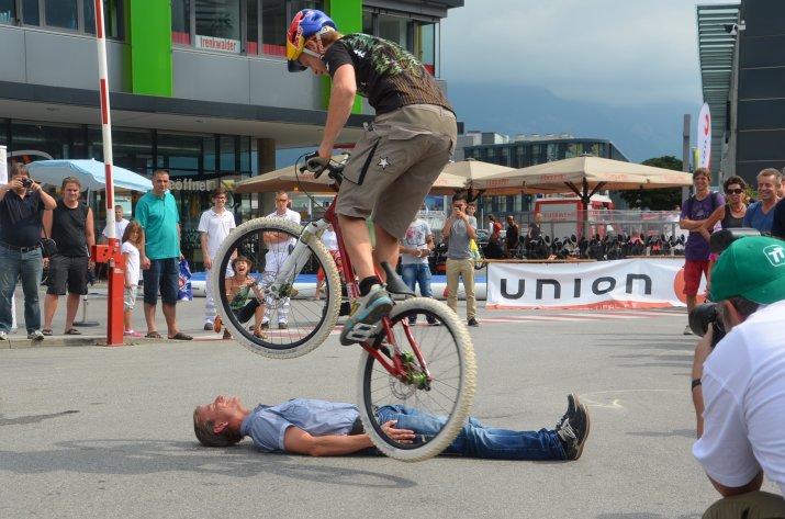 Bereits zum 22. Mal lud das Einkaufszentrum DEZ unter der Leitung von Center-Manager Helmut Larch zur Eröffnung des Kinderferienzuges. Heuer wurde das bunte Kinderfest gemeinsam mit der Sportunion organisiert – Bewegung stand dementsprechend bei vielen Stationen im Vordergrund. Neben einer Hüpfburg konnten die Kinder ihr Talent beim Slacklining zeigen, Speed-Tennis spielen oder an einer Mal-Station ihrer Kreativität freien Lauf lassen. Eine gesunde Jause sorgte für das leibliche Wohl. Einen besonderen Höhepunkt stellte die rasante Mountainbike-Show von Trial-Profi Tom Öhler dar.