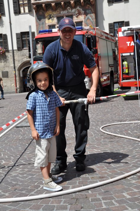 Geladen hatte „Peterle“, der – so wissen alle Kinder – vom Stadtturm aus über Innsbrucks Kinder wacht und sich besonders um deren Sicherheit sorgt. In der Herzog-Friedrich-Straße gaben Peterles Freunde von Polizei, Berufsfeuerwehr, Rotem Kreuz und Bergrettung kindgerecht wichtige Sicherheitstipps. Auch in der Quizrallye, der geheimen Grotte im Stadtturm und bei der Mal- & Spielstation erfuhren die Kinder auf unterhaltsame Art viel Lehrreiches zum Thema Sicherheit im Sommer.