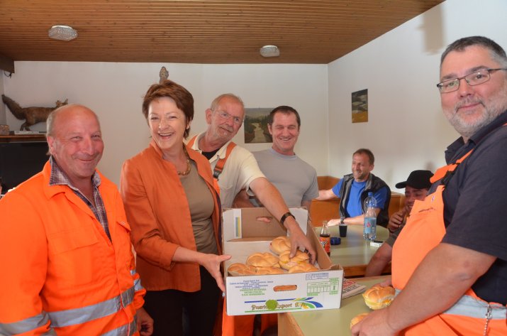 Sichere Straßen und eine saubere Stadt – das ganze Jahr über: Das ist die Mission des städtischen Amtes für Straßenbetrieb. Für diese Leistung bedankte sich Tiefbaustadträtin Dr. Marie-Luise Pokorny-Reitter am 9. Mai – zum letzten Mal in Ausübung ihrer politischen Funktion – mit Wurst- und Käsesemmeln bei den Mitarbeitern des Bauhofs Innere Stadt.
