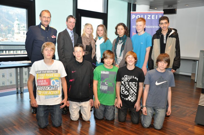 Zur Prämierung waren neben den SchülerInnen, DirektorInnen und KlassenlehrerInnen u. a. auch Bezirksschulinspektor Ferdinand Treml, Amtsvorstand Elmar Rizzoli, Projektleiter Oberstleutnant Hubert Rimml (Leiter des Kriminalreferates des Stadtpolizeikommandos Innsbruck) gekommen.