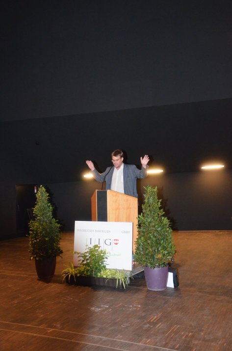 Im Beisein von IIG-Geschäftsführer Ing. Dr. Franz Danler, Dr. Christina Beste von MED-EL und Stefan Raab vom Verein „Freies Theater Innsbruck“ fand anschließend eine Besichtigung der Räumlichkeiten statt. Auch zahlreiche BesucherInnen – darunter VertreterInnen des städtischen Kulturausschusses, Mitwirkende am Projekt und Landtagspräsident DDr. Herwig van Staa – ließen sich diesen ersten Vorgeschmack auf das Entstehende nicht entgehen.
