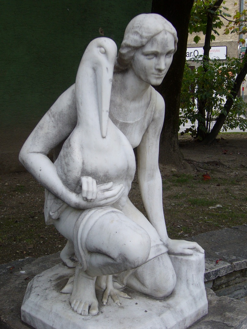Das „Mädchen mit Storch“ hingegen blickt in die Ferne, vielleicht in die eigene Zukunft. Der „zutrauliche“ Storch könnte in dieser als Adebar, der in der germanischen Sage als Lebensbringer gilt, eine „offiziell gewünschte“ Rolle spielen. Abgesehen davon kann der Schnabel des Vogels durchaus auch als Phallus-Symbol interpretiert werden.