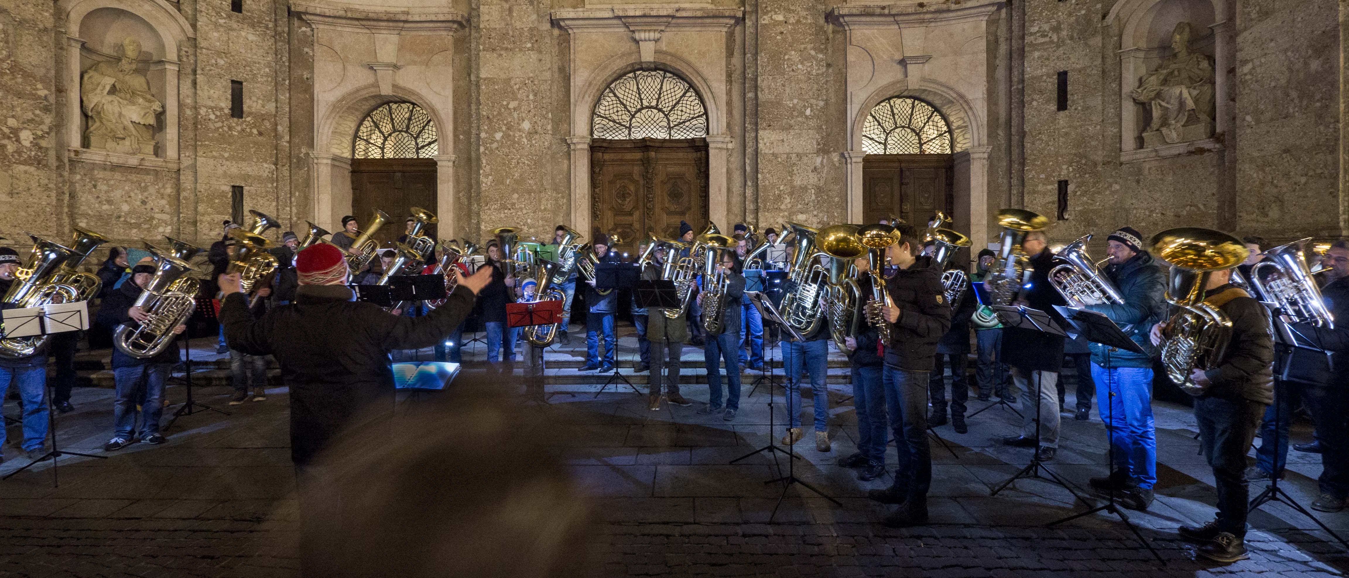 Unter dem Titel „Tuben, Eu-phonien und Tenorhörner erschallen im adventlichem Klange“ sind MusikliebhaberInnen am 23. Dezember um 19:00 Uhr eingeladen, sich vor dem Dom zu St. Jakob in Weihnachtsstimmung versetzen zu lassen. Am letzten Tag vor dem Heiligen Abend spielen unter der Leitung von Hansjörg Simon aktive und ehemalige SchülerInnen aus allen Regionen und Musikschulen des Landes Tirol Weihnachtslieder und verkürzen damit musikalisch die Wartezeit auf das Christkind. Das Repertoire reicht dabei von „Es wird scho glei dumpa“ über „Kling Glöcklein“ bis hin zu „Ihr Kinderlein kommet“ und wird ausschließlich mit Tuben, Tenorhörnern und Euphonien dargeboten.