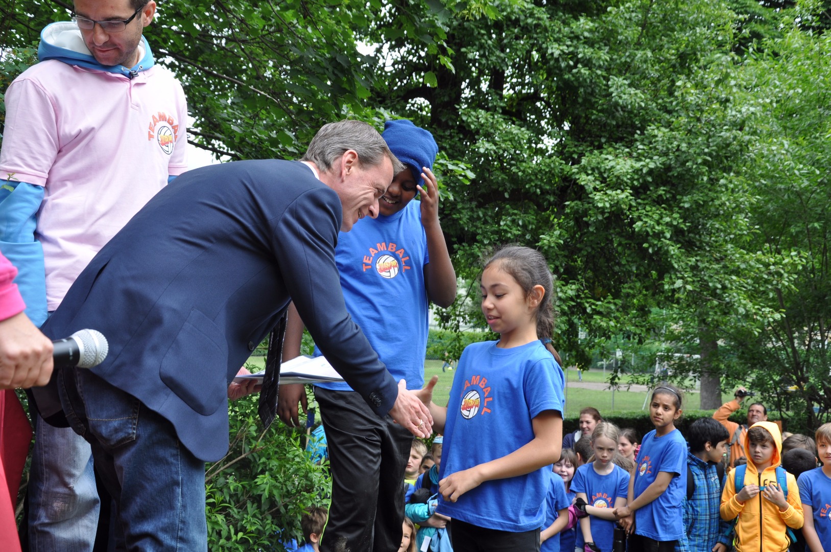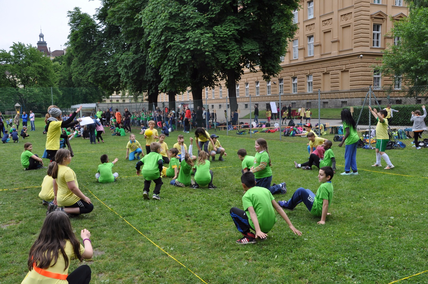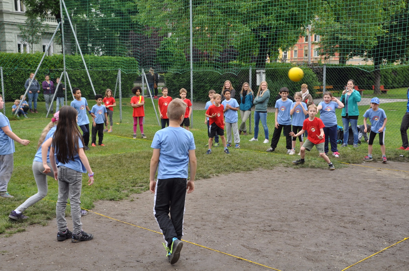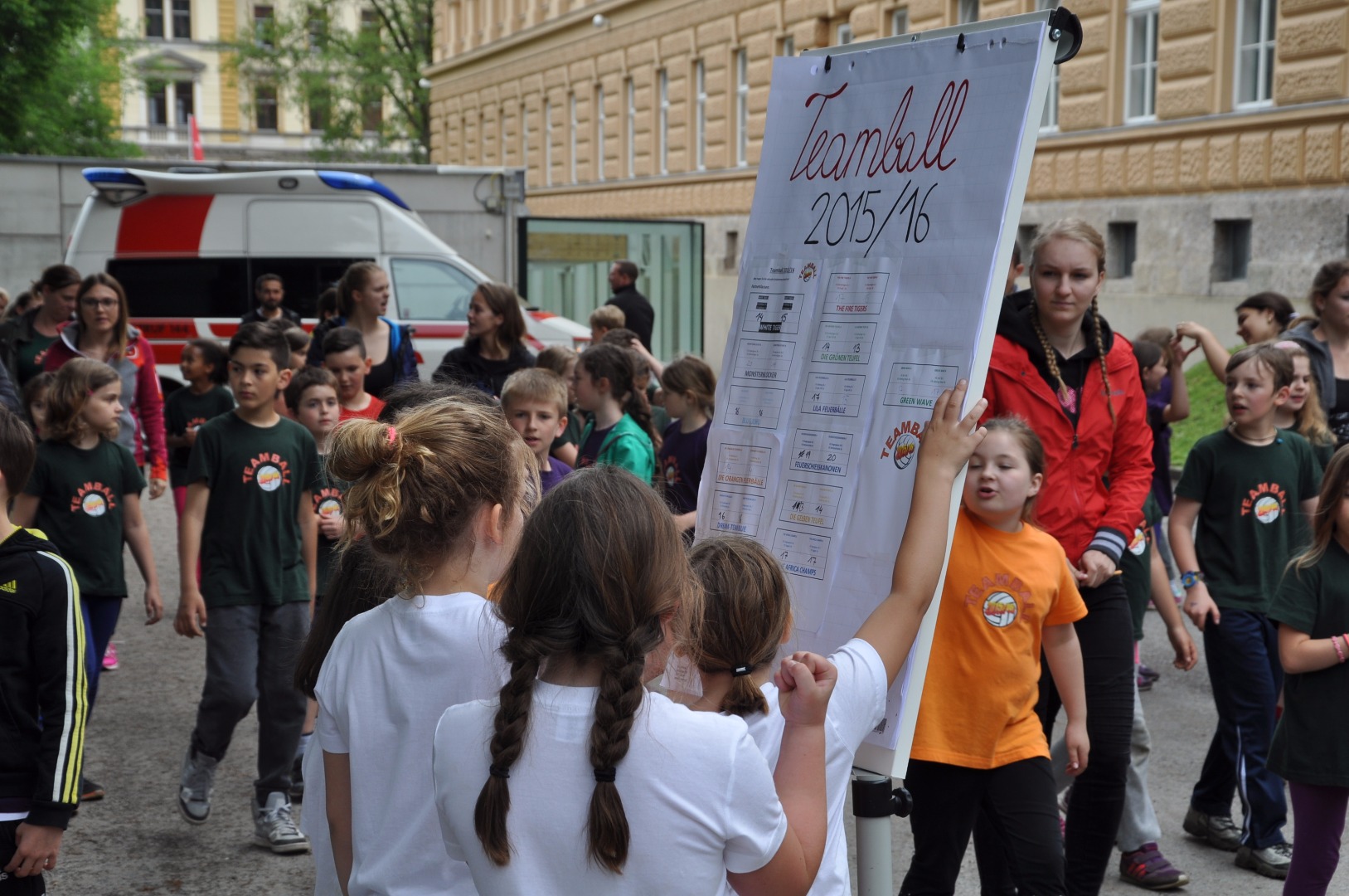 26 dritte Klassen aus 14 Innsbrucker Volksschulen (Angergasse, Hötting, Pradl-Leitgeb I, Kettenbrücke, Igls-Vill, Sieglanger, Arzl, Allerheiligen, Altwilten, Dreiheiligen, Mühlau, Amras, Hötting-West und Saggen) wurden schon im Herbst des vergangenen Jahres zu Partnerklassen zusammengelost. Sie besuchten sich im Laufe dieses Schuljahres gegenseitig in den jeweiligen Schulen und spielten gemeinsam Teamball. Insgesamt nahmen 445 SchülerInnen an dem abschließenden Turnier teil – so viele waren es noch nie.