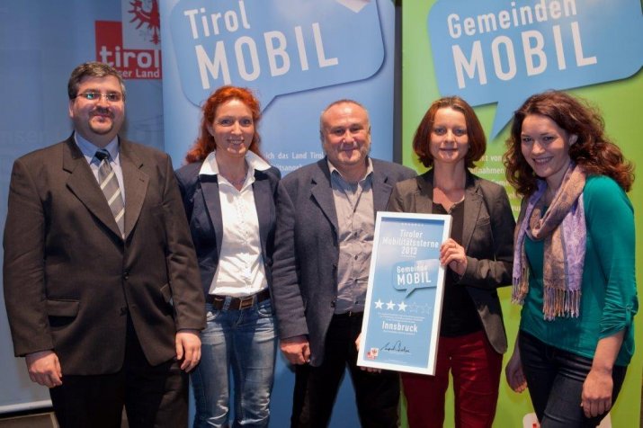 Spitzenreiter 2013 sind mit 4 bzw. jeweils 3 Sternen die Gemeinden Schwaz, Innsbruck, Kufstein, Kirchbichl, St. Anton am Arlberg, Wörgl und Volders. Bis zu fünf Mobilitätssterne können von der unabhängigen Fachjury verliehen werden. Die Jury trifft ihre Entscheidung auf Grundlage eines Kriterienkatalogs. Insgesamt 37 Gemeinden wurden 2013 mit „Mobilitätssternen“ ausgezeichnet. Die Mobilitätsauszeichnung wird vom Land Tirol seit 2009 in Zweijahresabständen vergeben. Die Organisation des Auszeichnungsverfahrens und die Betreuung der Gemeinden liegt bei Energie Tirol.