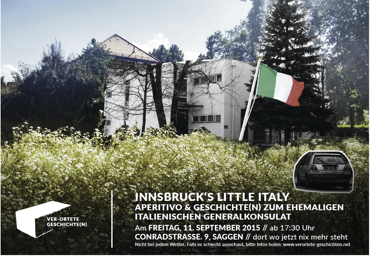 Dort wo jetzt nichts mehr steht, hat sich vor einiger Zeit noch einiges abgespielt: In der Conradstraße 9 stand das ehemalige italienische Generalkonsulat. Anlaufstelle für Passfragen, Demonstrationen gegen die Südtirol-Politik und für manch eine/n Besucher/in „die Chance, einmal direkt in Innsbruck nach Italien einzutauchen“. Im Rahmen des Projektes „ver-ortete Geschichte(n)" haben sich Laura Masuch und Lisa Nussmüller auf die Spurensuche von Geschichte(n) über und zum Areal gemacht. Am 11. September wird um 17:30 Uhr auf das Grundstück geladen und die Chance geboten, in ein Stück Italien einzutauchen.