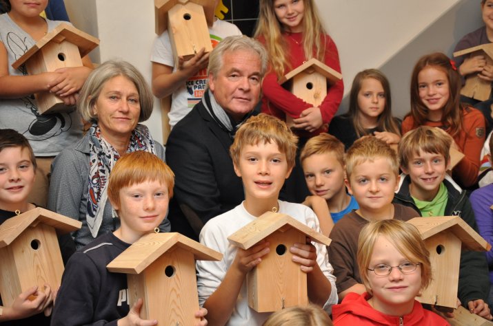 Jedes Kind bekam einen Nistkasten für zu Hause mit. Nun haben die Schülerinnen und Schüler die Aufgabe, die Nistkästen in der brutfreien Zeit bis März nächsten Jahres zu Hause aufzuhängen. Dann erfolgt die Besiedelung und in einem Jahr geht es an die Reinigung. „Zu beachten ist, dass ihr die Nistkästen während der Brutzeit nur beobachtet, sonst verlassen die Vogeleltern das Nest“, erklärte Karl Puelacher. „Es ist wichtig, auf die Tierwelt und die Umwelt zu achten“, so Innsbrucks Schulstadtrat Pechlaner, der den Kindern den Wert der Aktion nahe brachte.