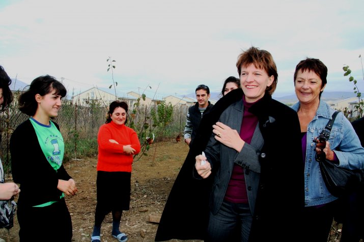 Bgm. Oppitz-Plörer stellte ihren Besuch aber auch ins Zeichen humanitärer Projekte. Die internationale Hilfsorganisation CARE betreibt in Khurvaleti in der Nähe von Tiflis ein Flüchtlingslager für georgische Vertriebene der letzten militärischen Konflikte in der Region. Unter anderem wurde eine Truthahnfarm besichtigt, die für die Flüchtlinge errichtet wurde und ihnen eine geregelte Arbeit ermöglicht. Besonders beeindruckt zeigte sich Bgm. Oppitz-Plörer von einem Hilfsprojekt in Gori, das auf Aus- und Weiterbildung für Flüchtlingsfrauen setzt. Hier möchte sie in Innsbruck engagierte Frauen finden, die sich für entsprechende Einzelprojekte in der Region um Tiflis einsetzen.